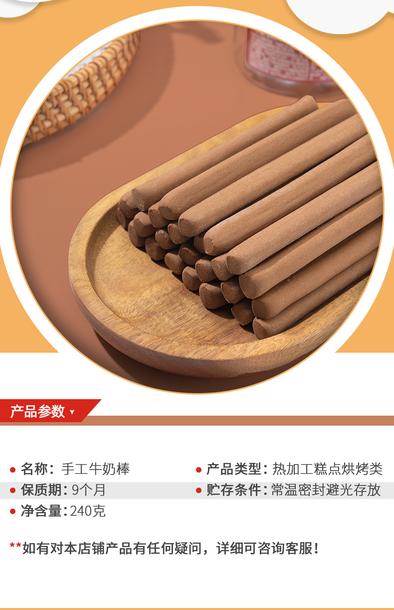 韧性手指饼干手工牛奶棒巧克力棒240g