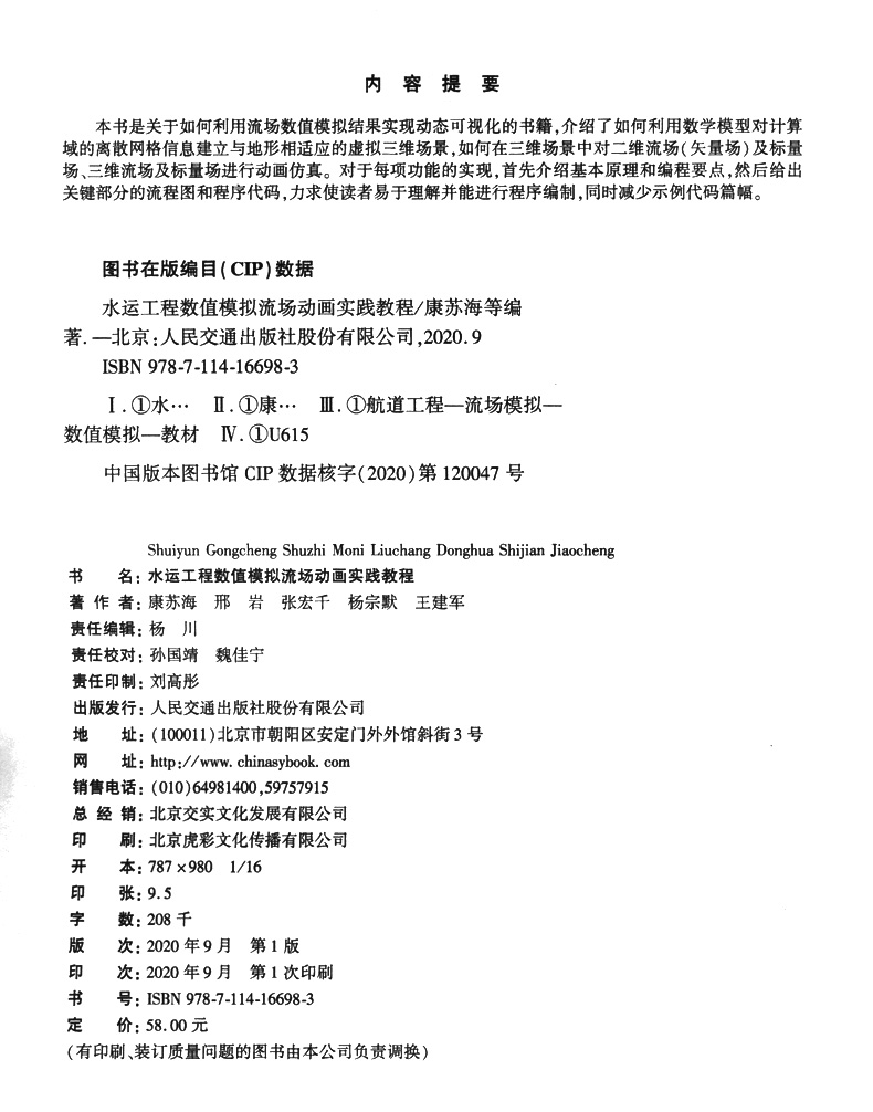 书名:水运工程数值模拟流场动画实践教程