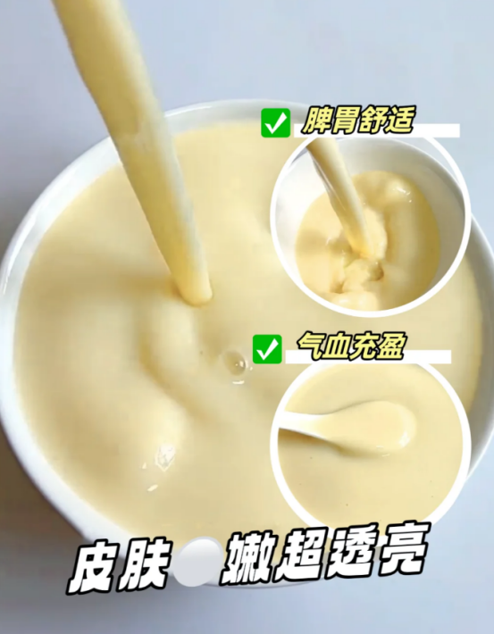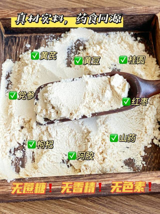 一杯普通豆浆的钱 喝一碗贵妇级养颜豆浆 🔺选用药食同源食材 豆粉、红枣、山药、枸杞、桂圆、党参、黄芪、阿胶 每一种食材都对女人非常好 0添加配方 每天一杯,改善脸色暗黄、手脚冰凉 气血不足、姨妈期量少的姐妹一定要安排起来! 口感香醇丝滑,好喝又养颜 减肥减脂期都能喝!
