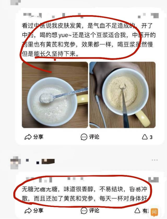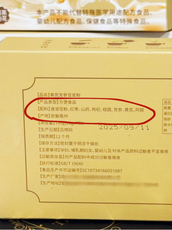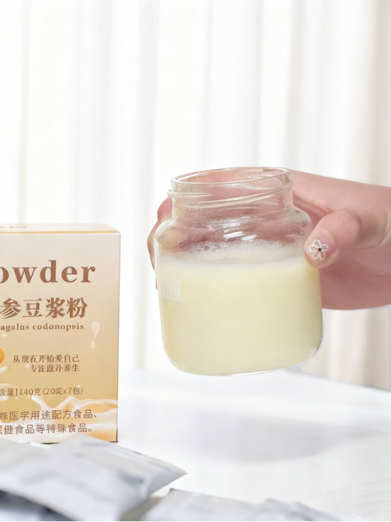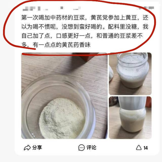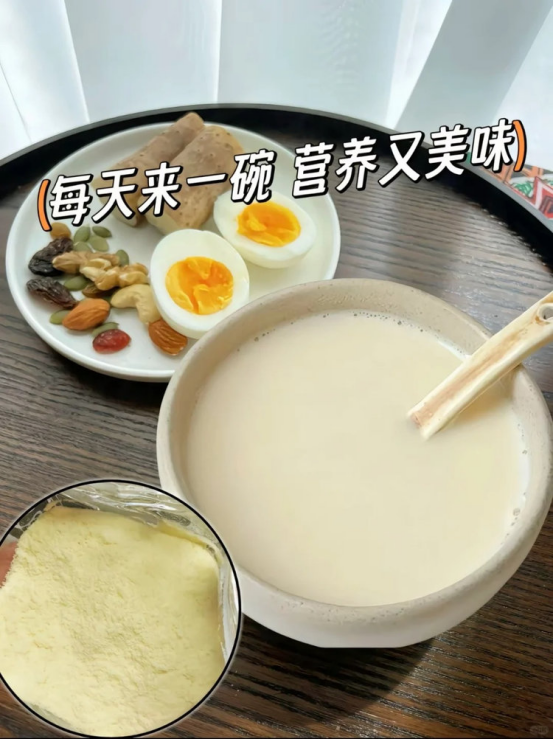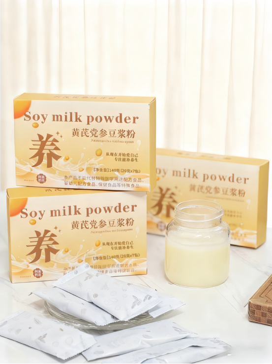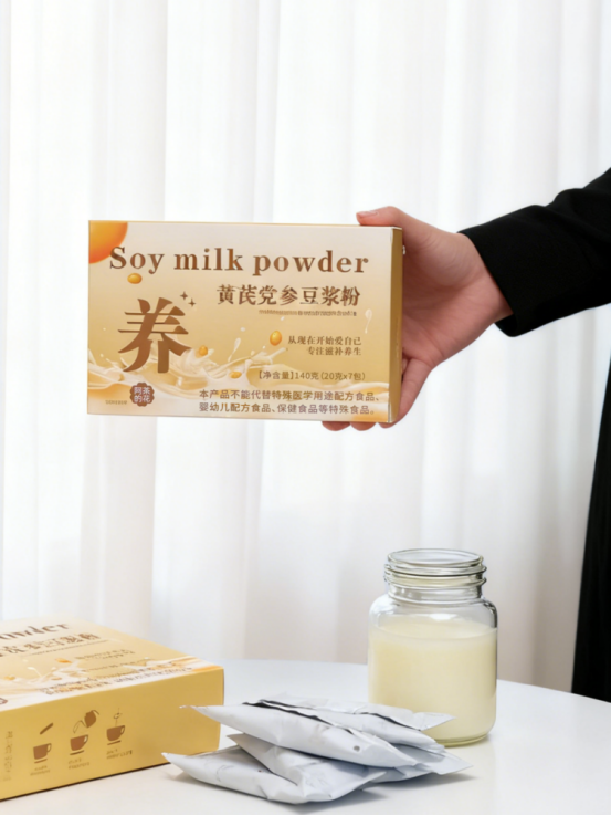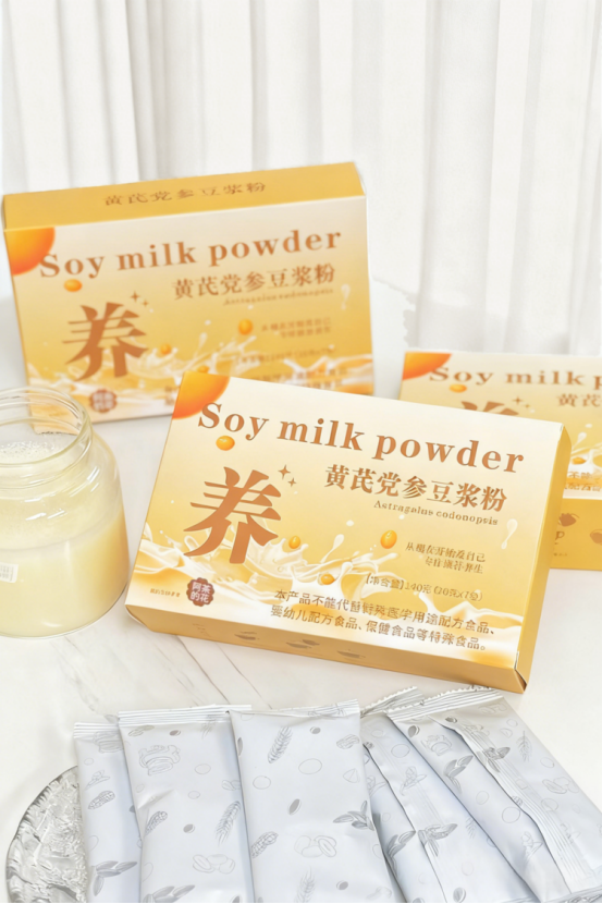 不掺假✅0添加⚠ 高品质纯原粉🙋 黄豆、黄芪、党参、红枣 补充高蛋白、高膳食纤维等等 早餐来一条 加点温水,搅拌一下,就能喝了! 喝起来还挺香浓,很好喝!