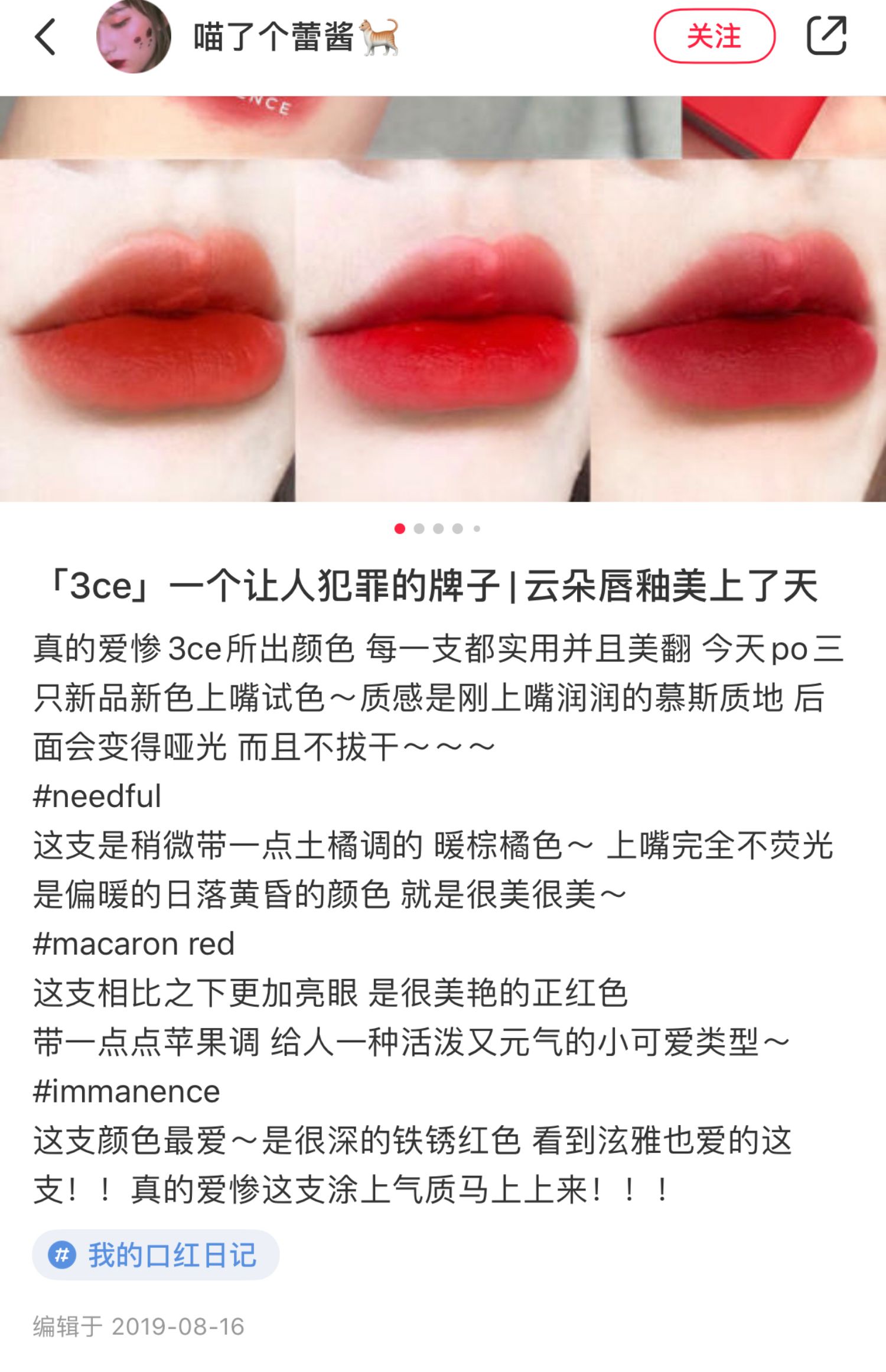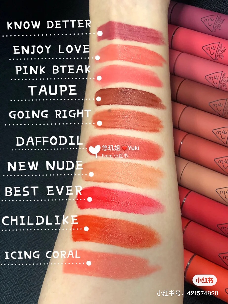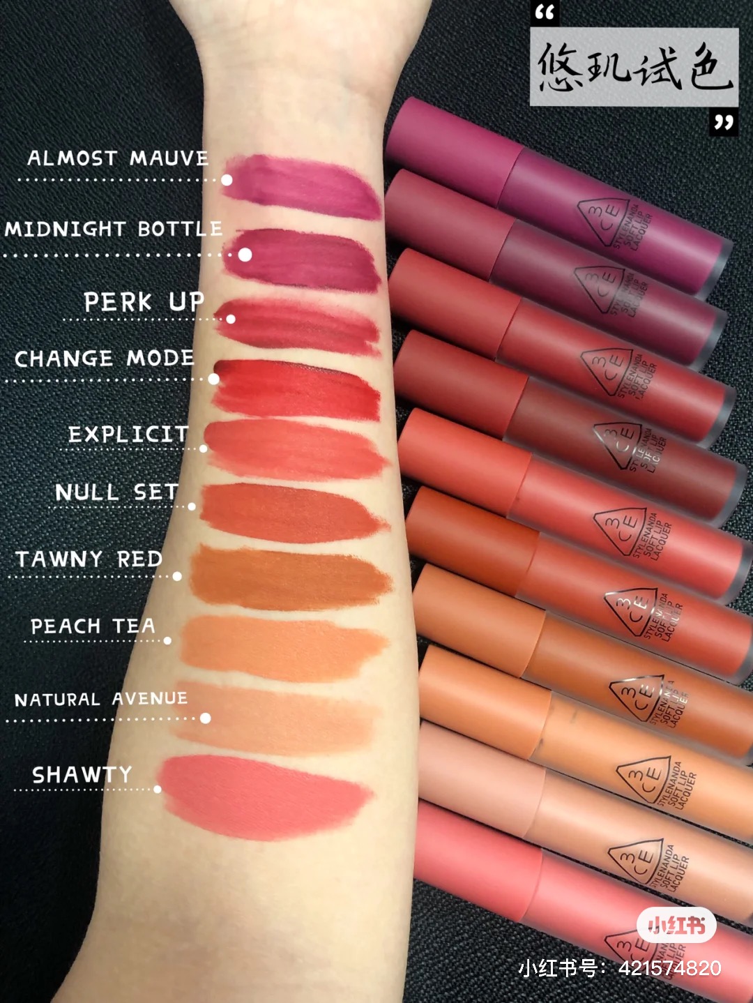 【YZ】韩国3CE丝绒唇釉细管云朵唇釉口红哑光