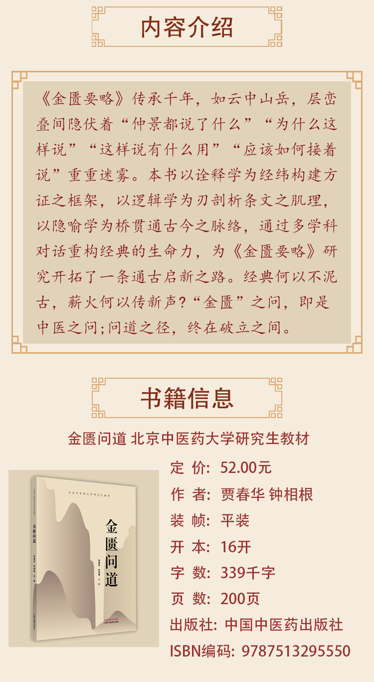 金匮问道 北京中医药大学研究生教材 贾春华 钟相根 主编 杂病辨证论治体系 肺痿肺痈咳嗽上气病脉证治 等 中国中医药出版社