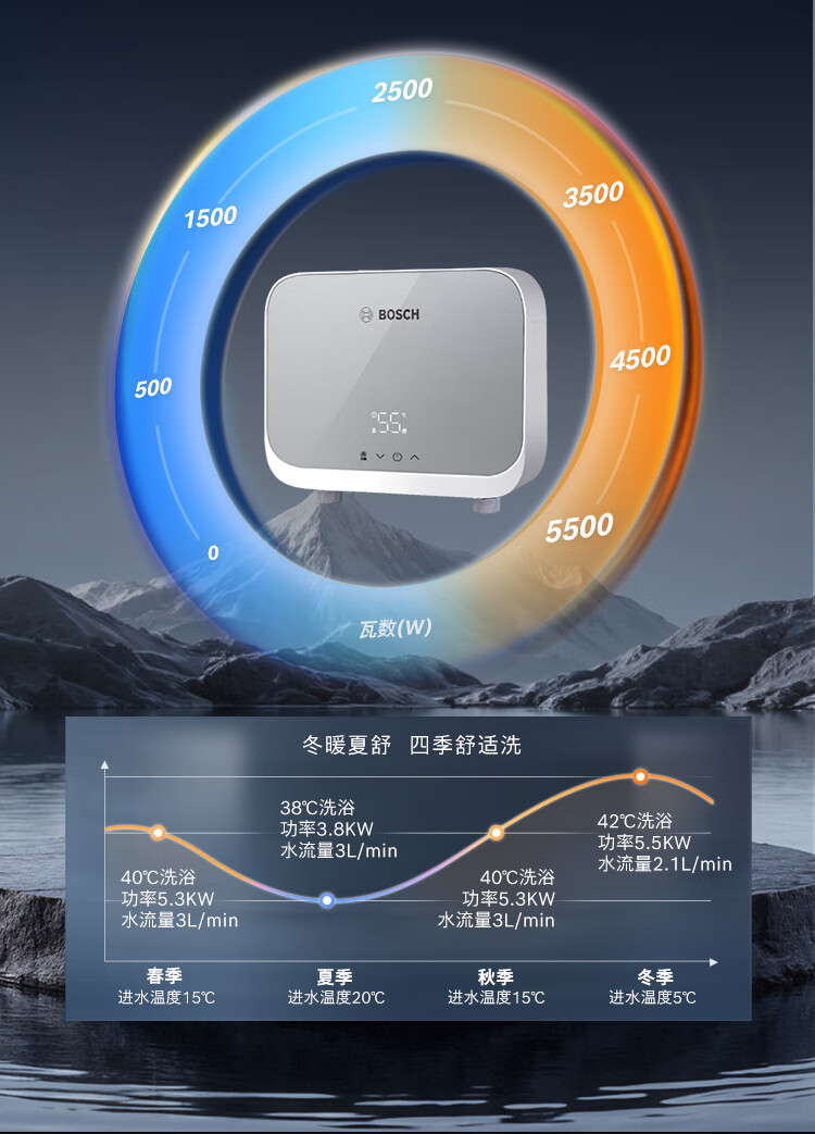 博世(BOSCH)即热式小厨宝电热水器智能变频控制5500W无极变频不限水量 5500W 雪云白