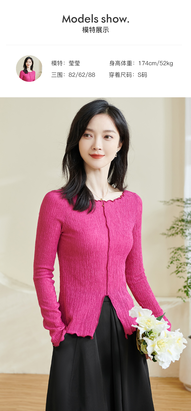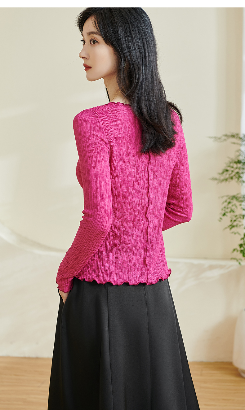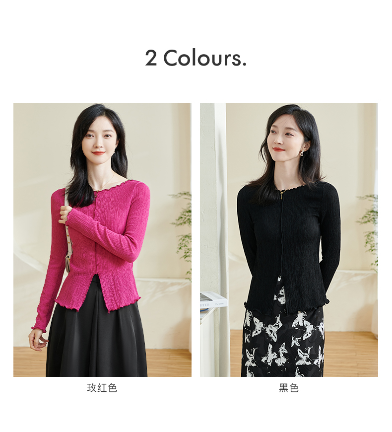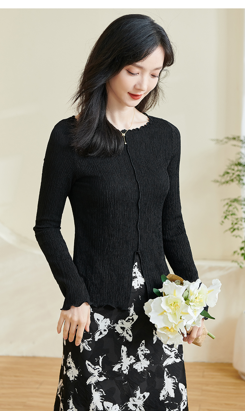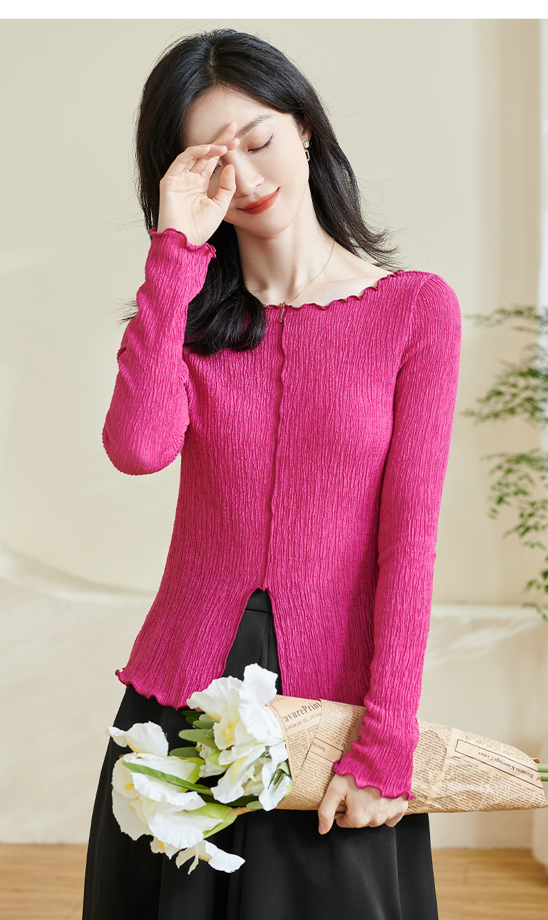 剩S/M 米思阳2025秋季新款时尚气质肌理感T恤修身弹力纯色开叉上衣0294