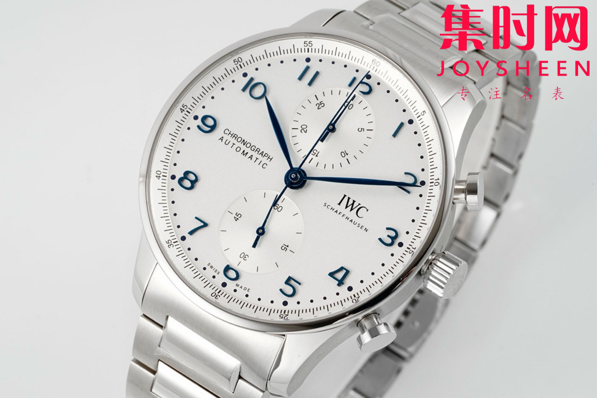 扛鼎新作一IWC万国表 AZ葡萄牙系列计时腕表 透底葡计钢带款 男士腕表 白盘蓝针