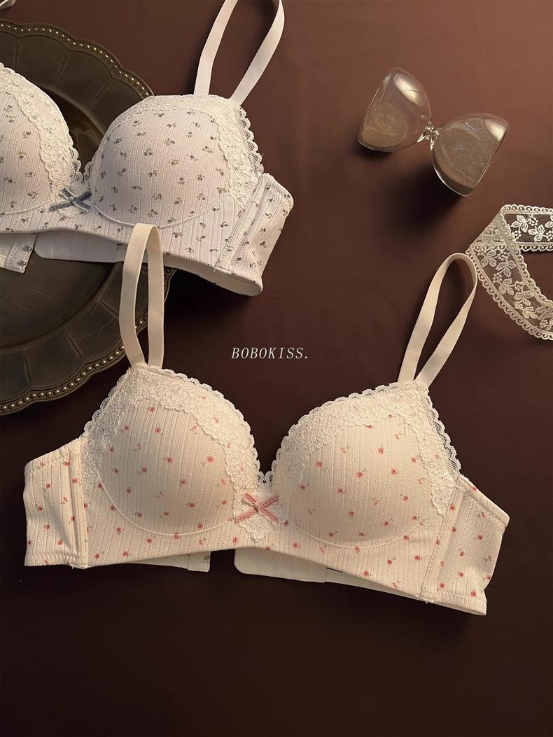 【GZ】无忧购49元2件甜美少女草莓麻薯蕾丝边性感内衣小胸聚拢显大文胸(截单后7天发货)
