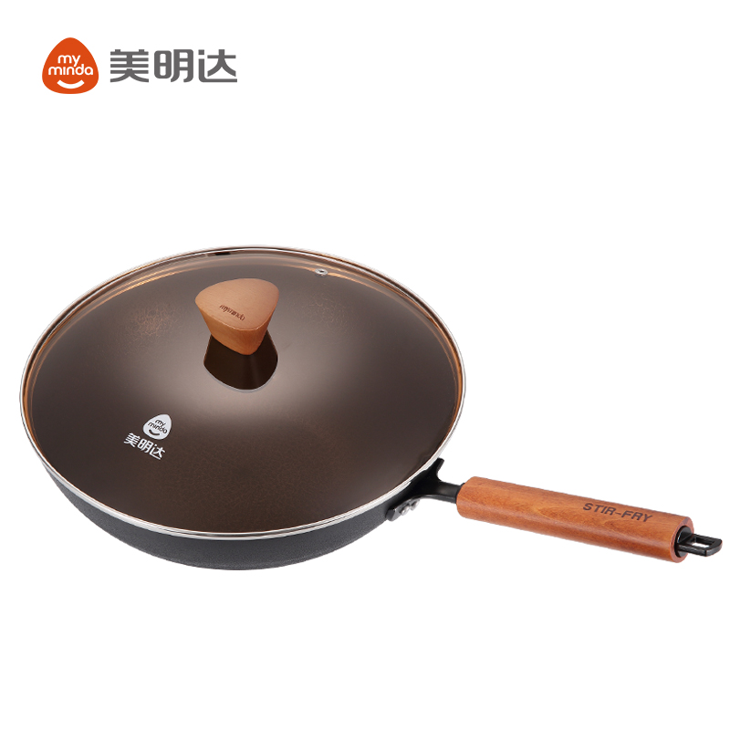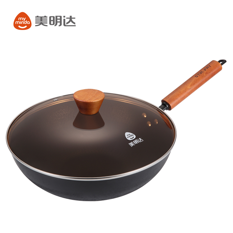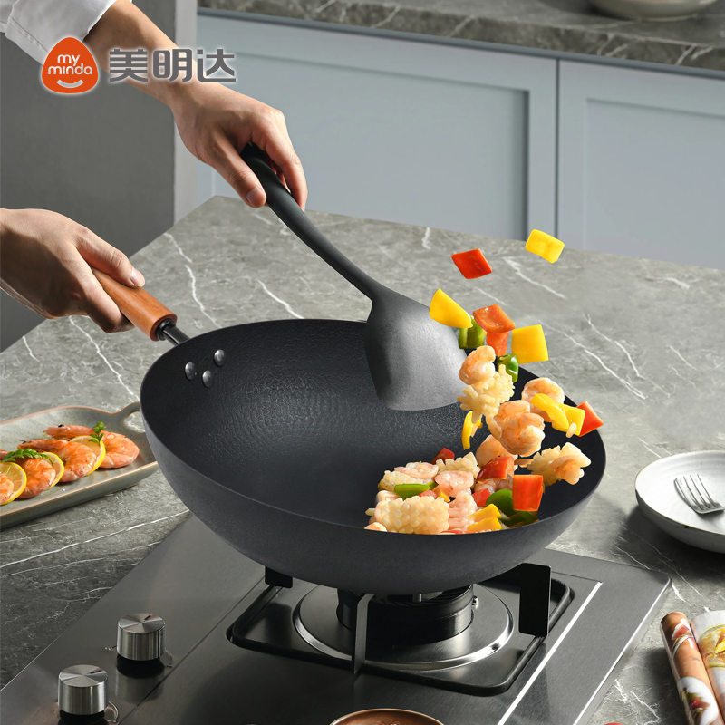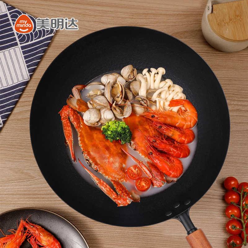 美明达 金釜捶打锅 无涂层更健康还原食材本真味道。 选用高纯度精铁,深层碳氮窒化技术,从材料 源头和工艺解决铁锅易生锈孔的难题。