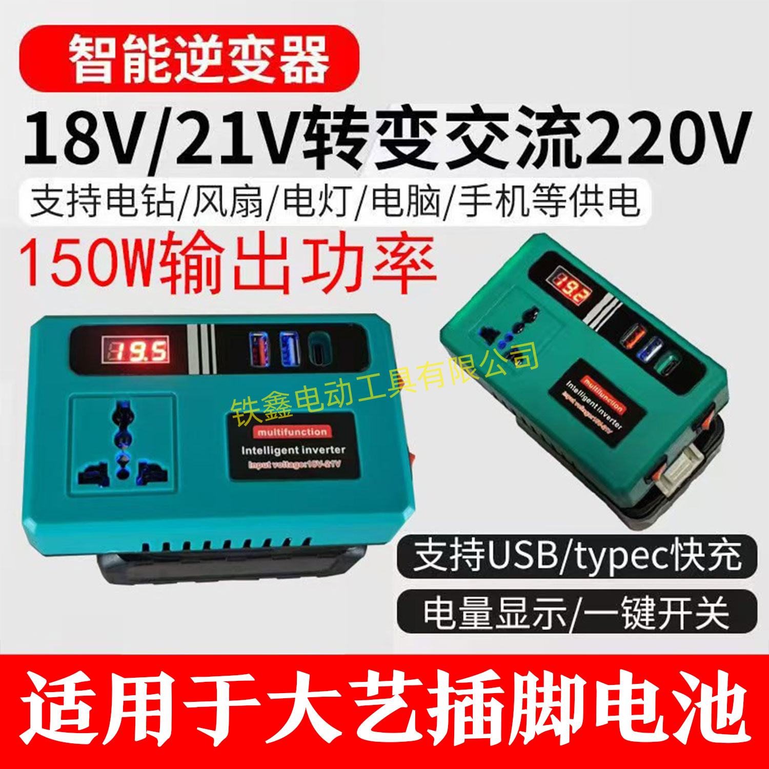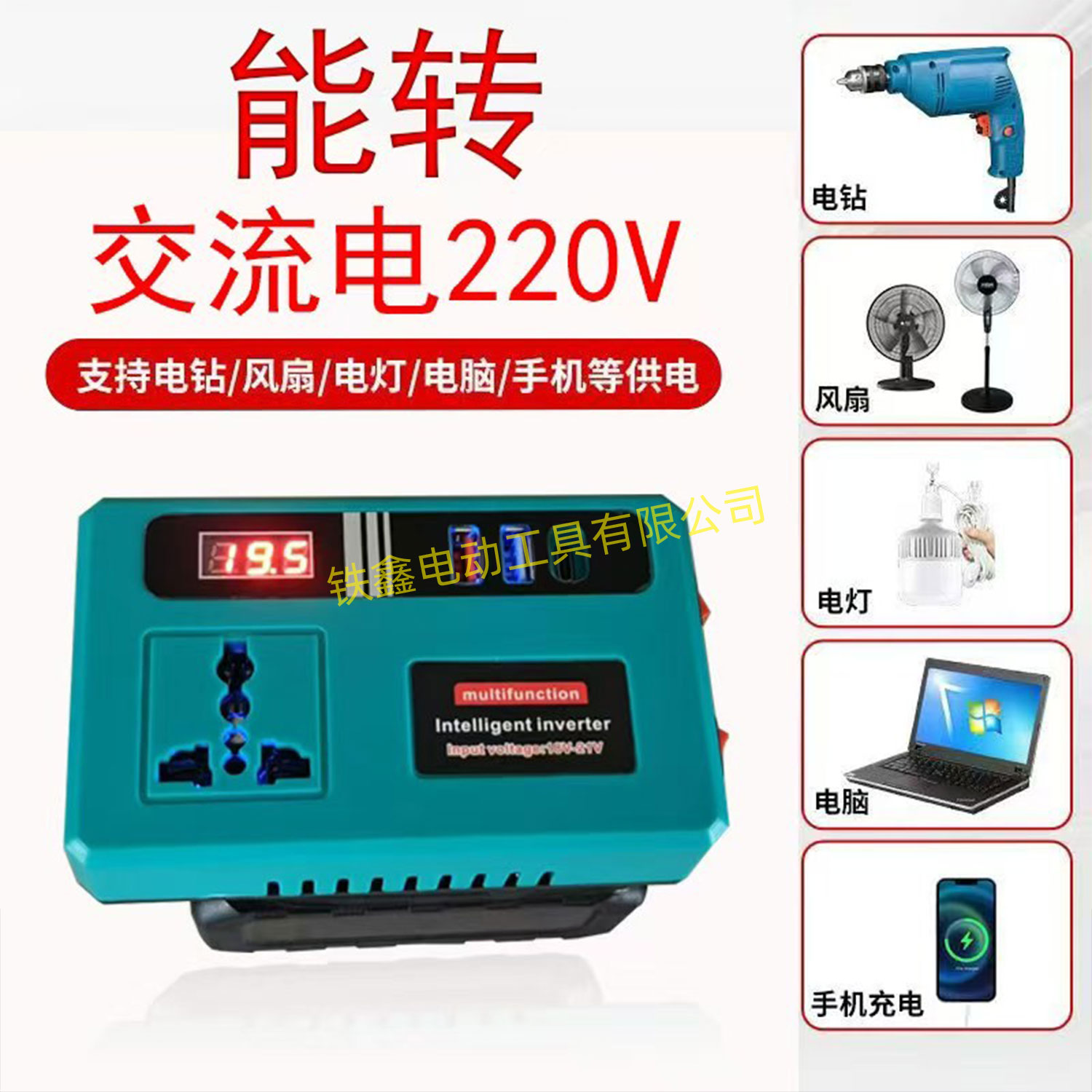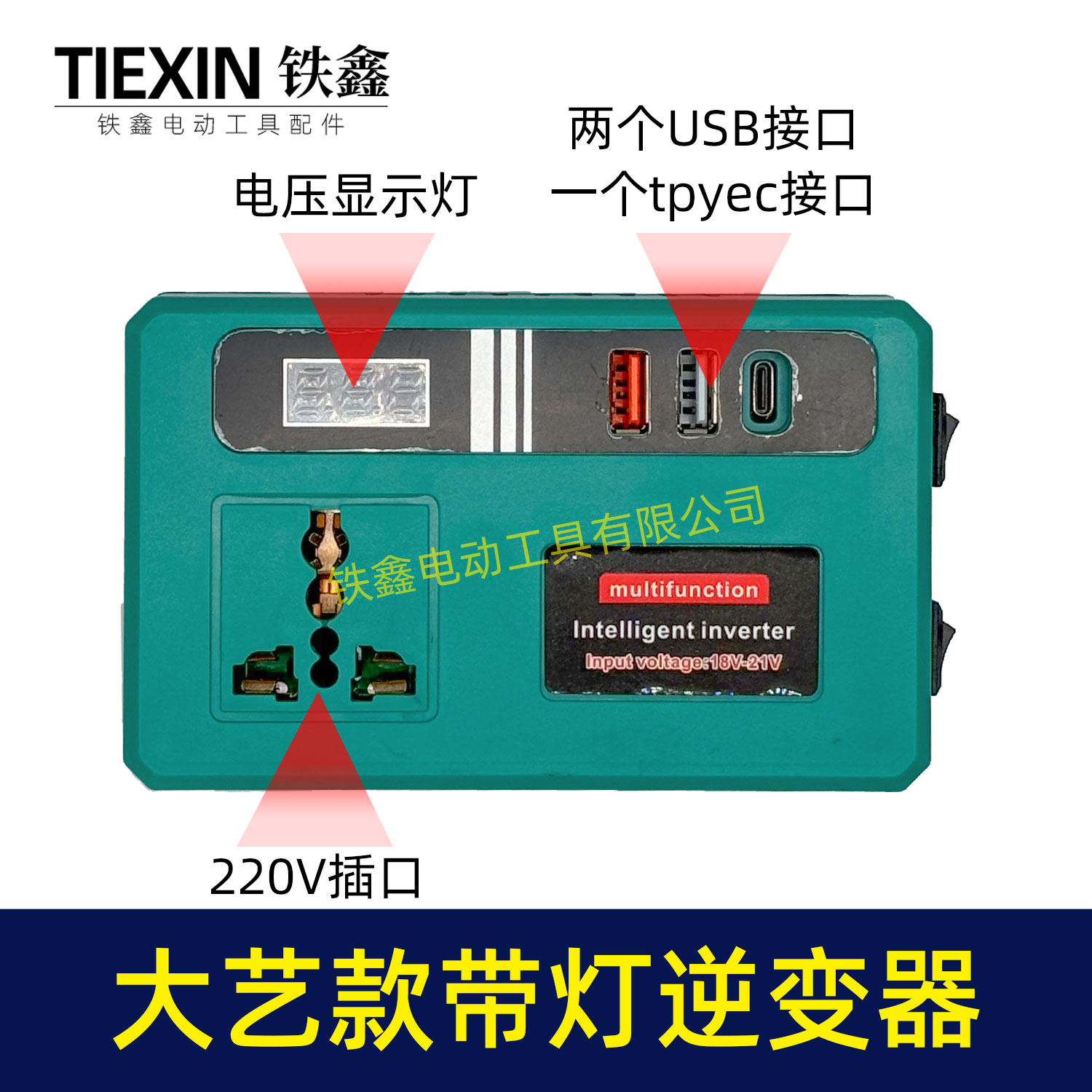 【货号07135】新款带灯逆变器大艺款逆变器多功能逆变器21V通用逆变器转换手机充电器快充