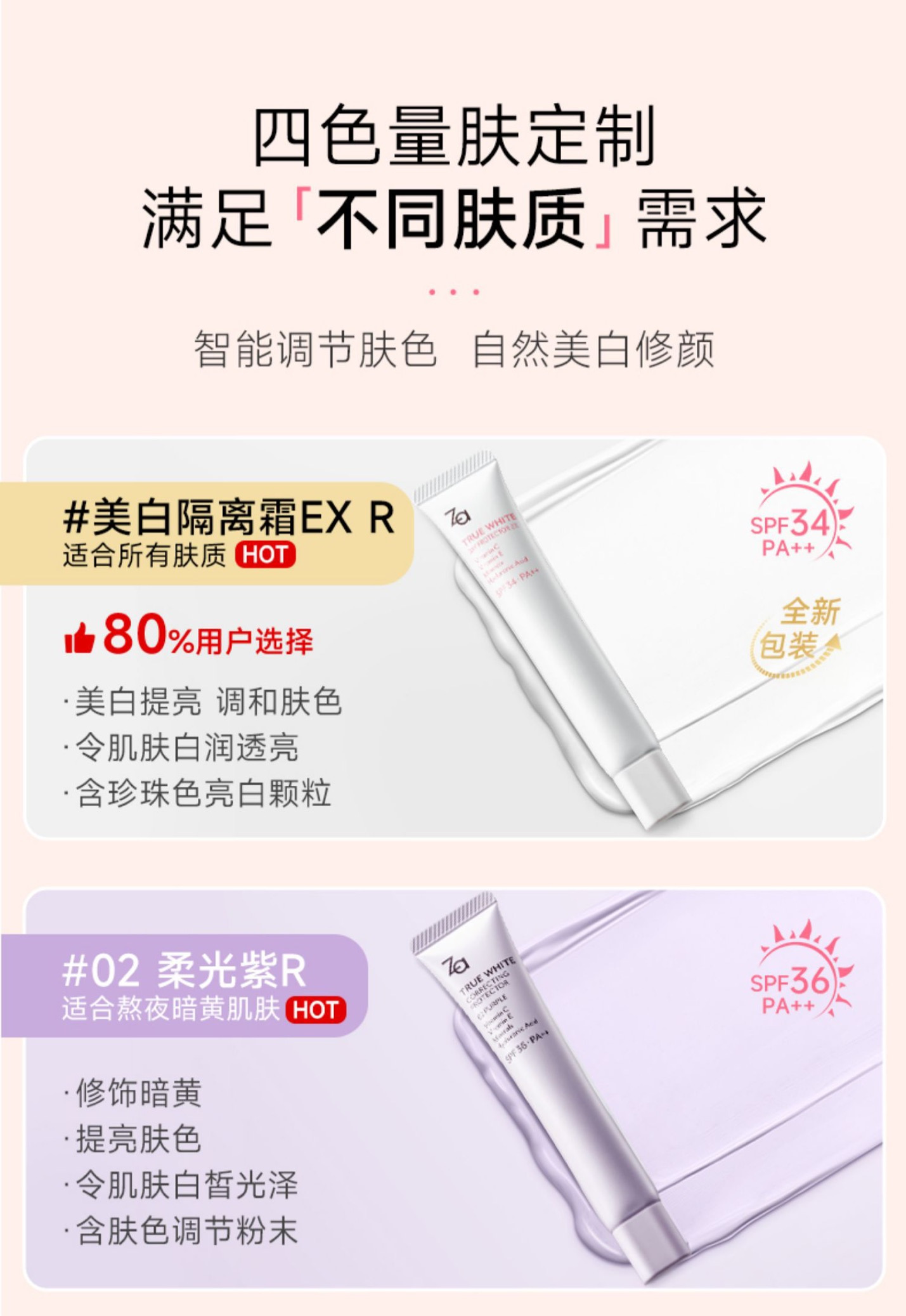 Za·姬芮新焕真皙隔离霜第五代 一支=妆前隔离乳+防晒霜+素颜霜 下单随机赠送4g小样