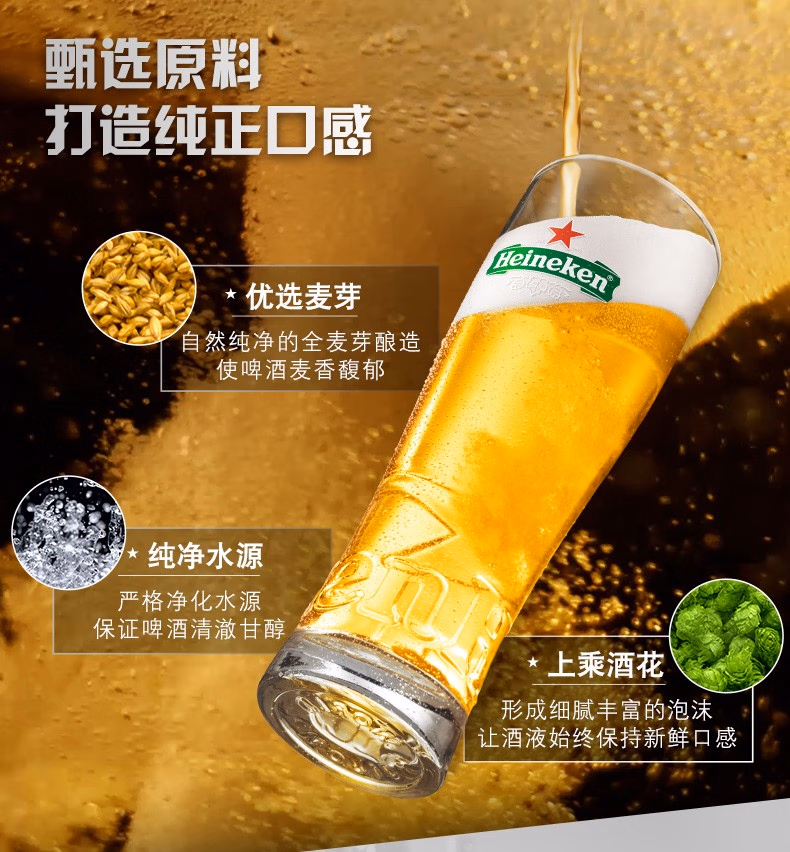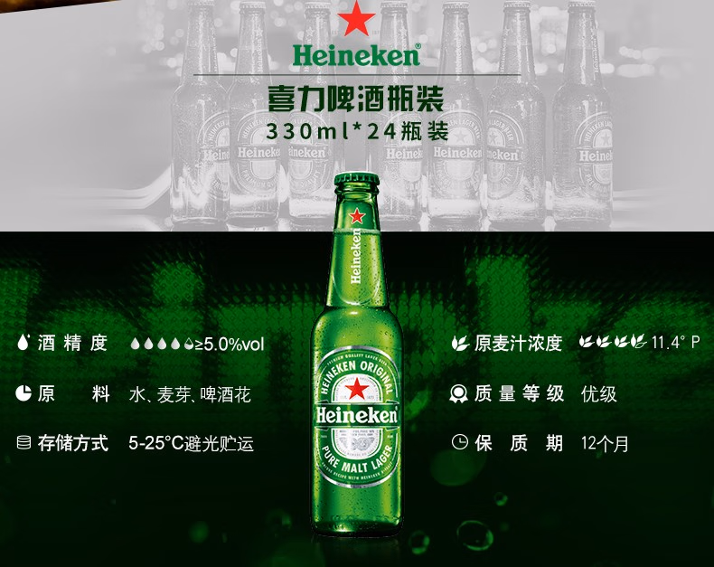喜力经典啤酒330ml中英文随机*1瓶/6瓶/12瓶/24瓶