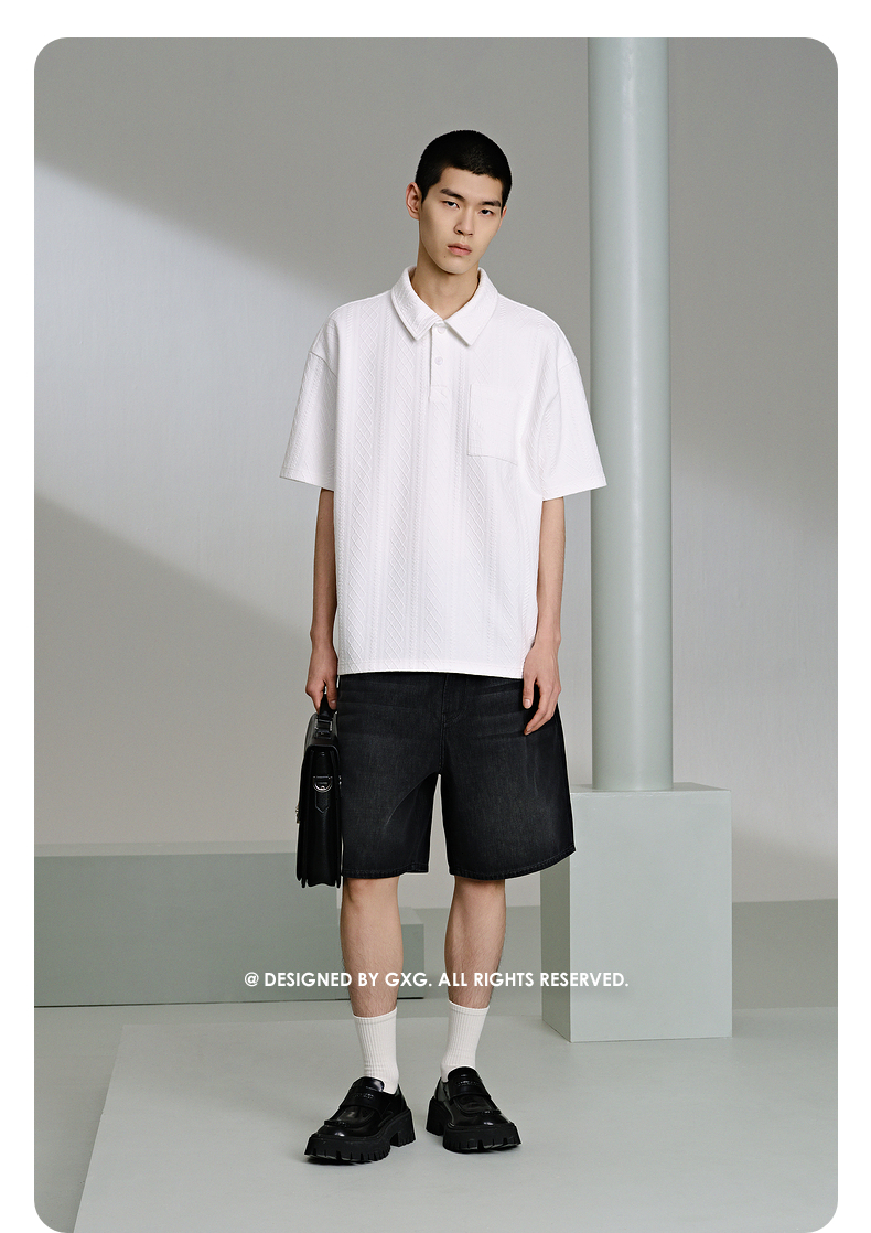GXG男装 满印提花肌理polo衫男 时尚潮流短袖polo夏季热卖G24X242034