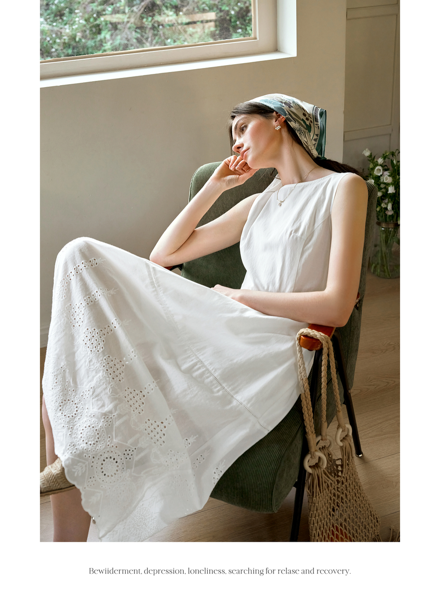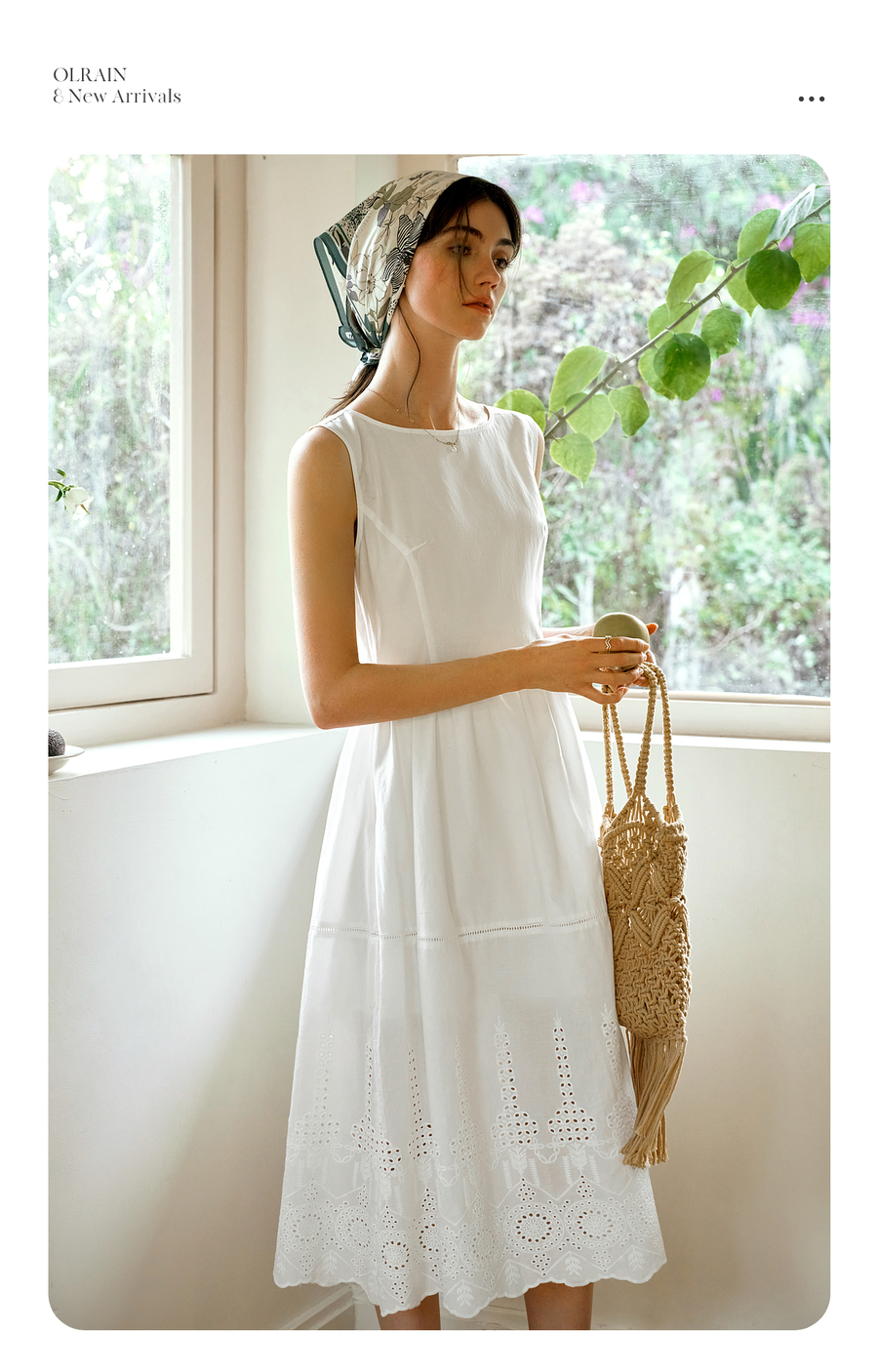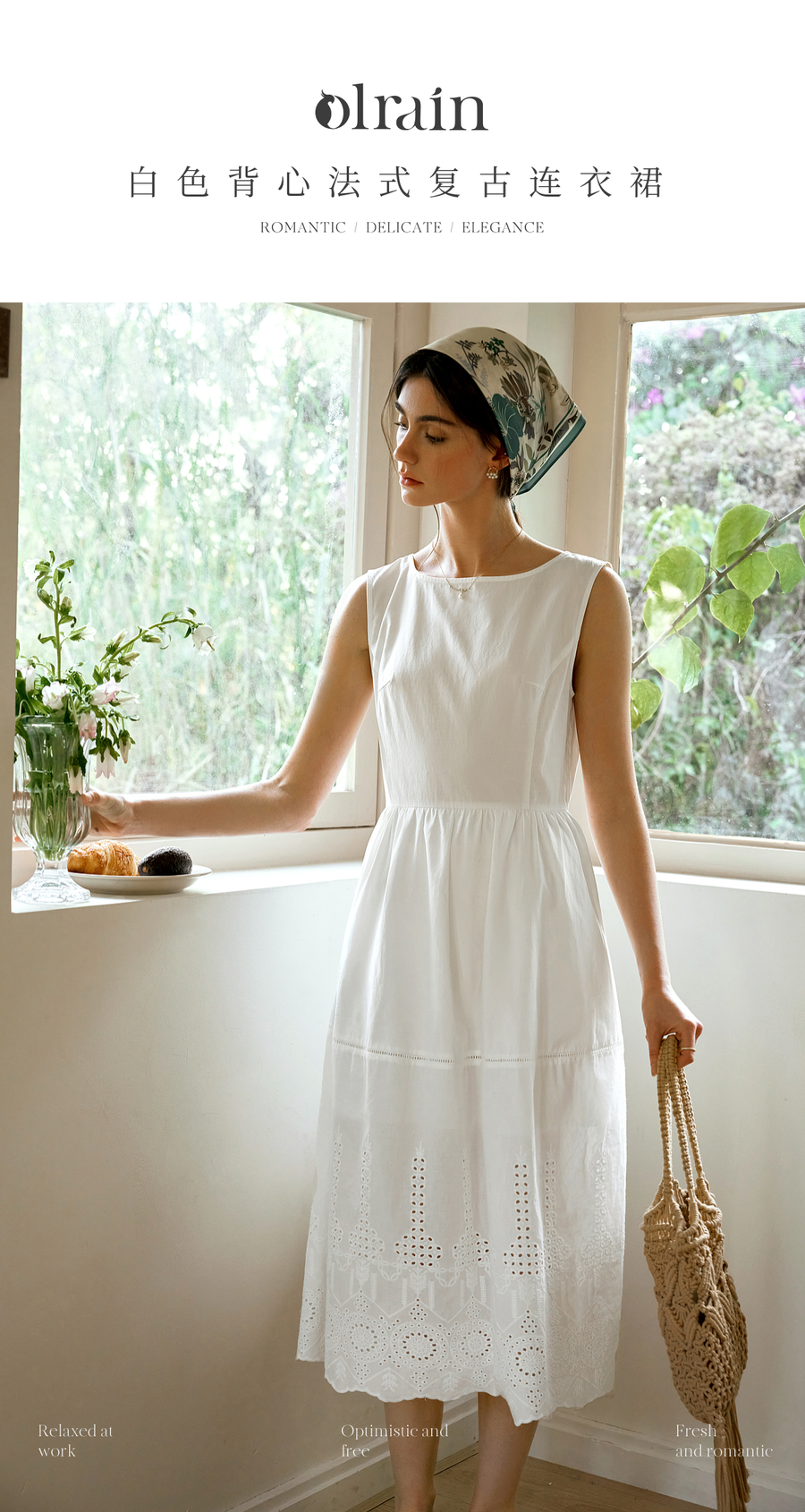 OLrain欧芮儿白色背心法式复古连衣裙女春季2025年新款收腰背带裙