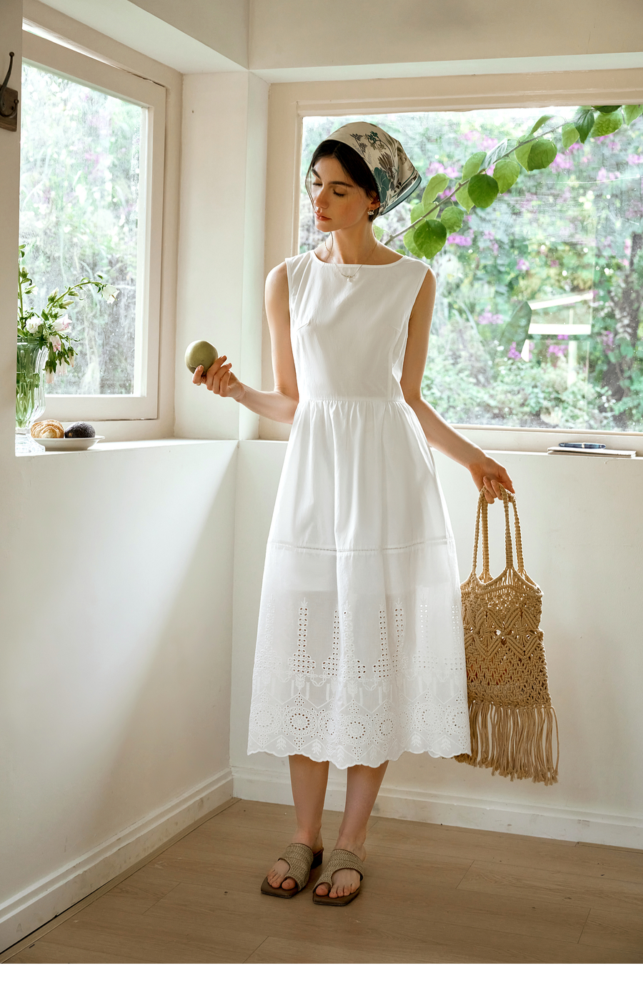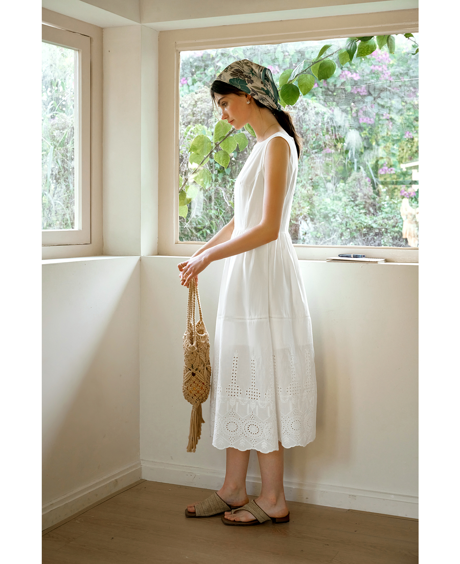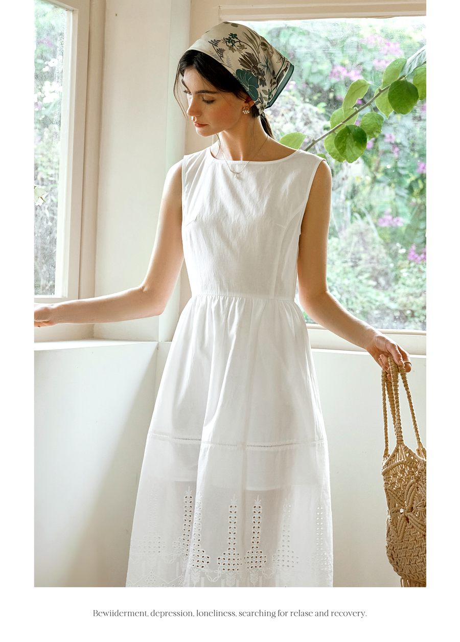OLrain欧芮儿白色背心法式复古连衣裙女春季2025年新款收腰背带裙