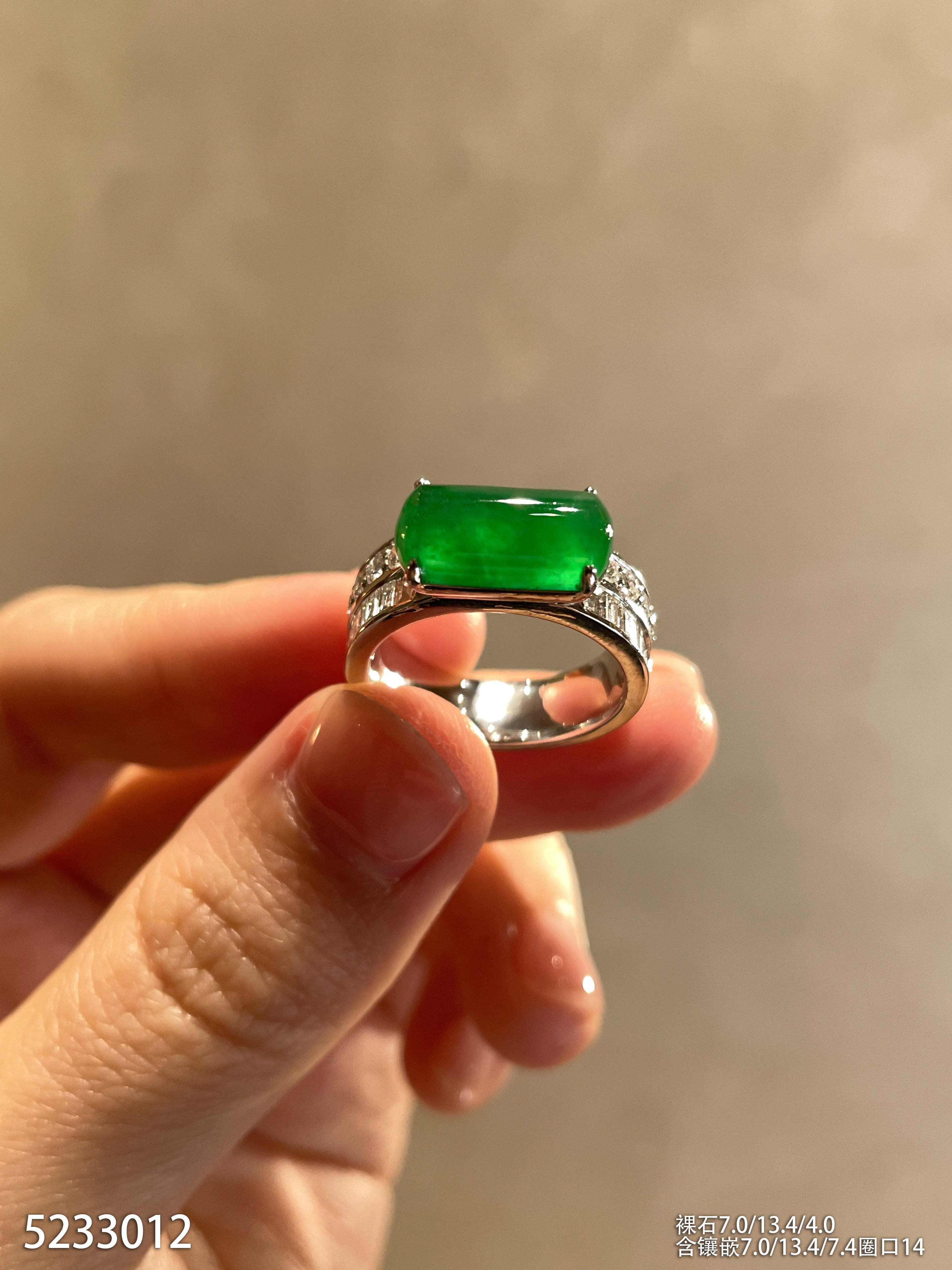 老坑玻璃种帝王绿马鞍戒指【5233012】具体价格微信咨询