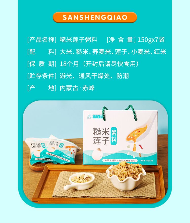 内蒙古翁牛特旗三生荞糙米莲子粥料150g*7袋/箱