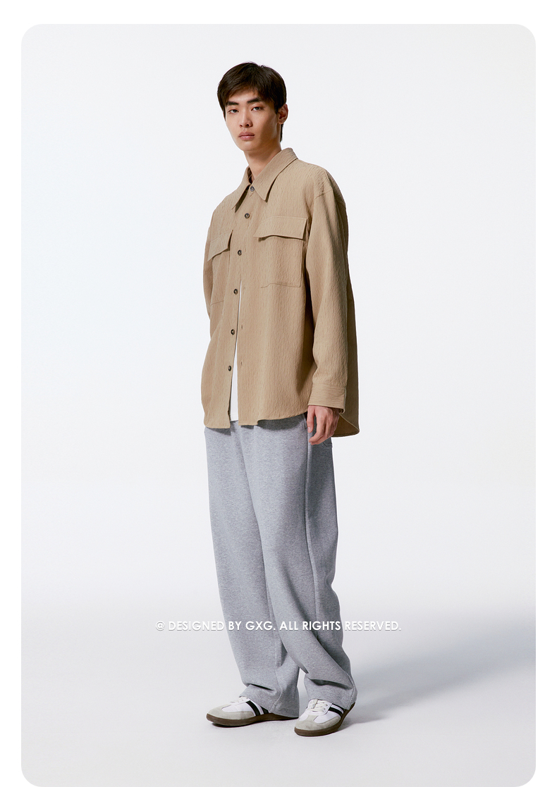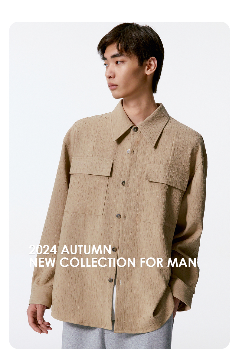 GXG男装 多色肌理感翻领长袖衬衫男士外套24年秋季热卖衬衫G24X033012