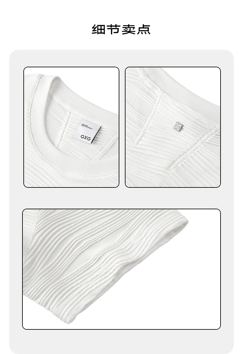 GXG男装 白色肌理提花短袖T恤 2024年夏季热卖G24X442100