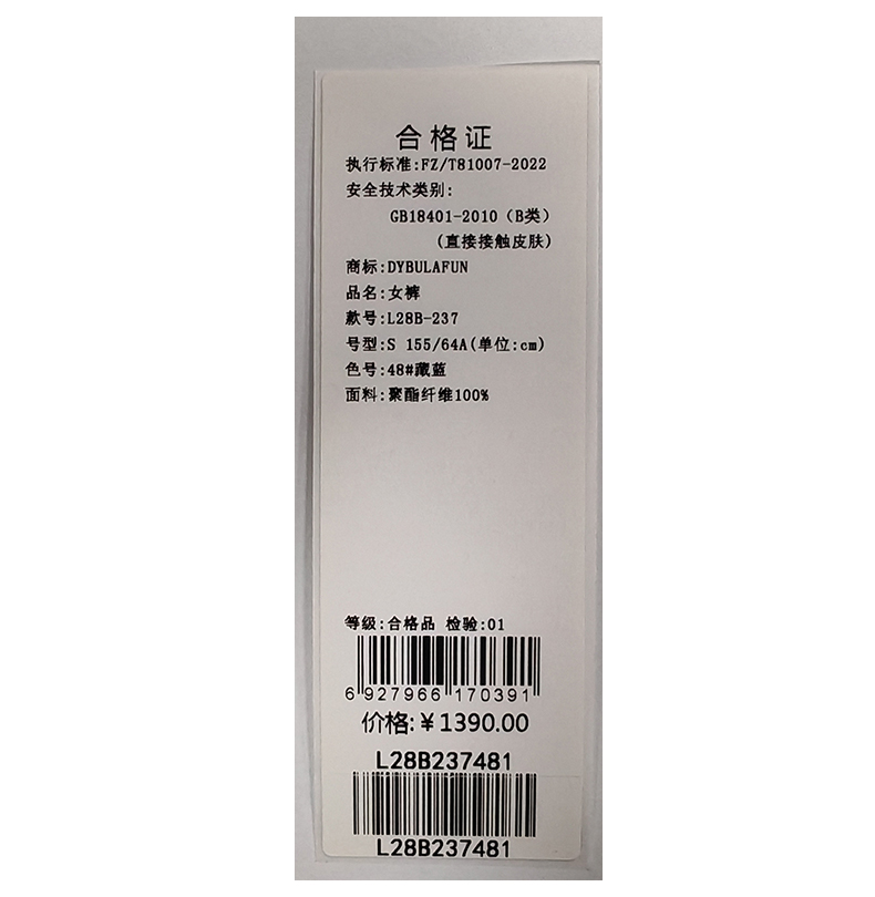 戴布拉芬裤子L28B237
