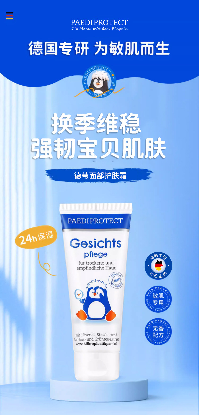 PaediProtect德蒂企鹅 儿童高滋润面霜75ml