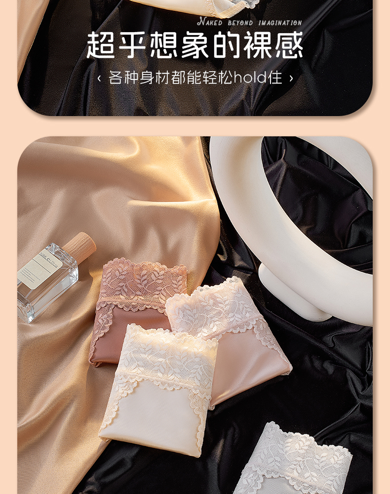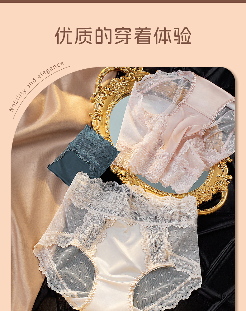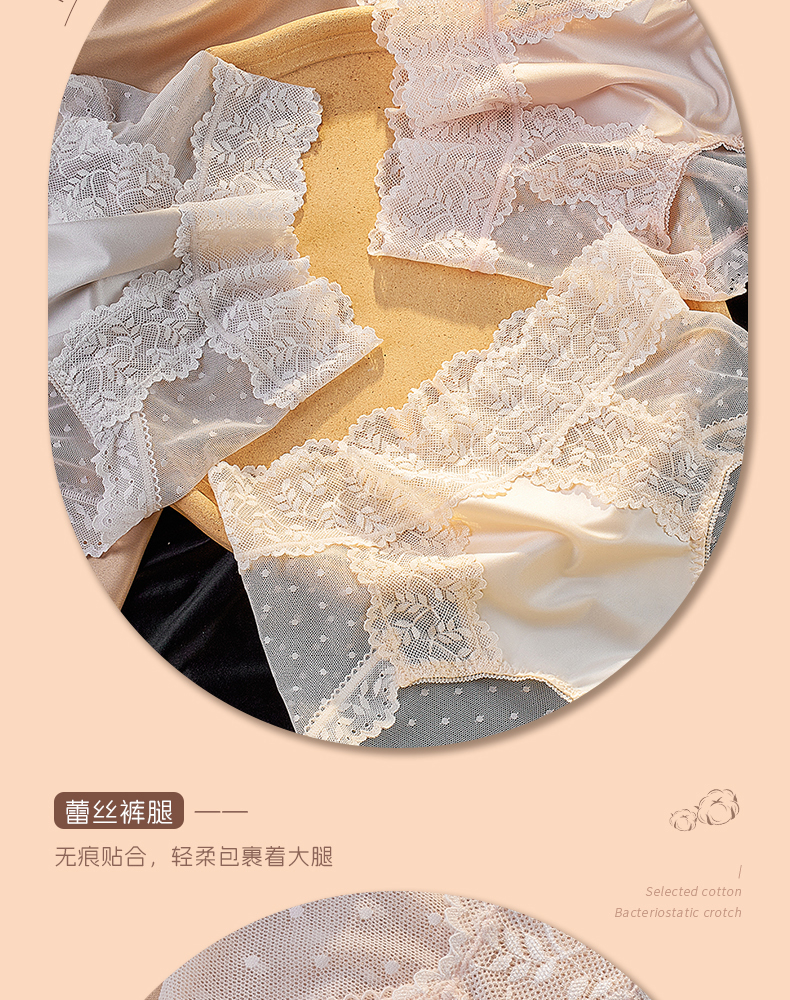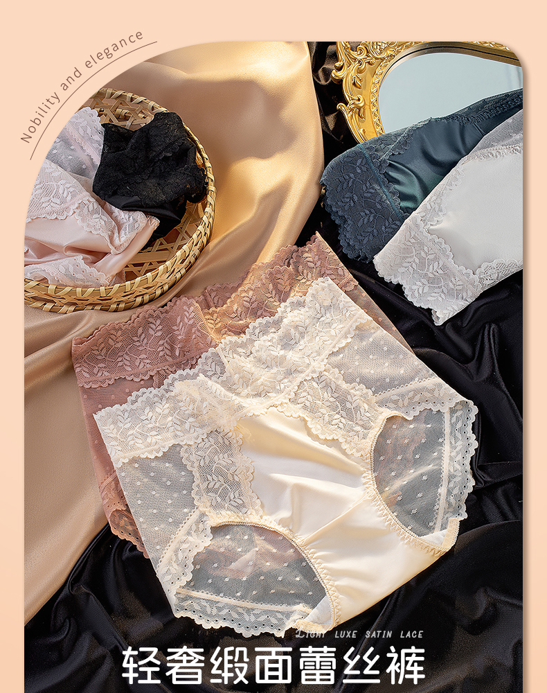 【5A抑菌】洁丽雅4条装女士中高腰轻奢蕾丝内裤抑菌棉裆舒适亲肤裸感三角裤