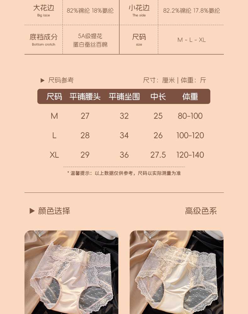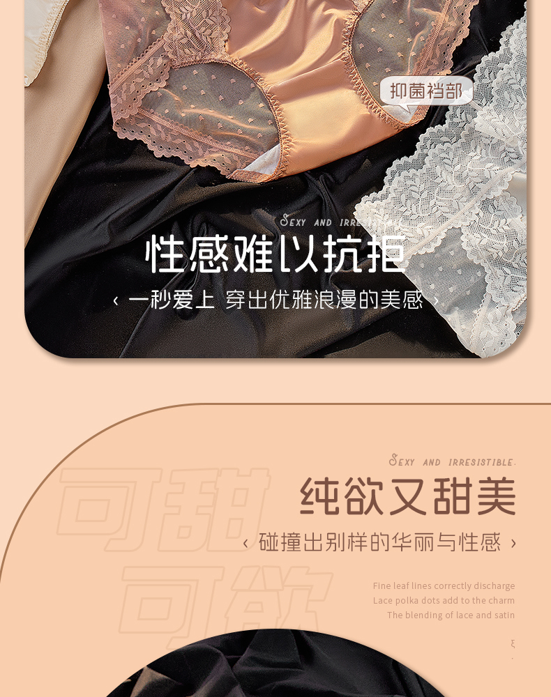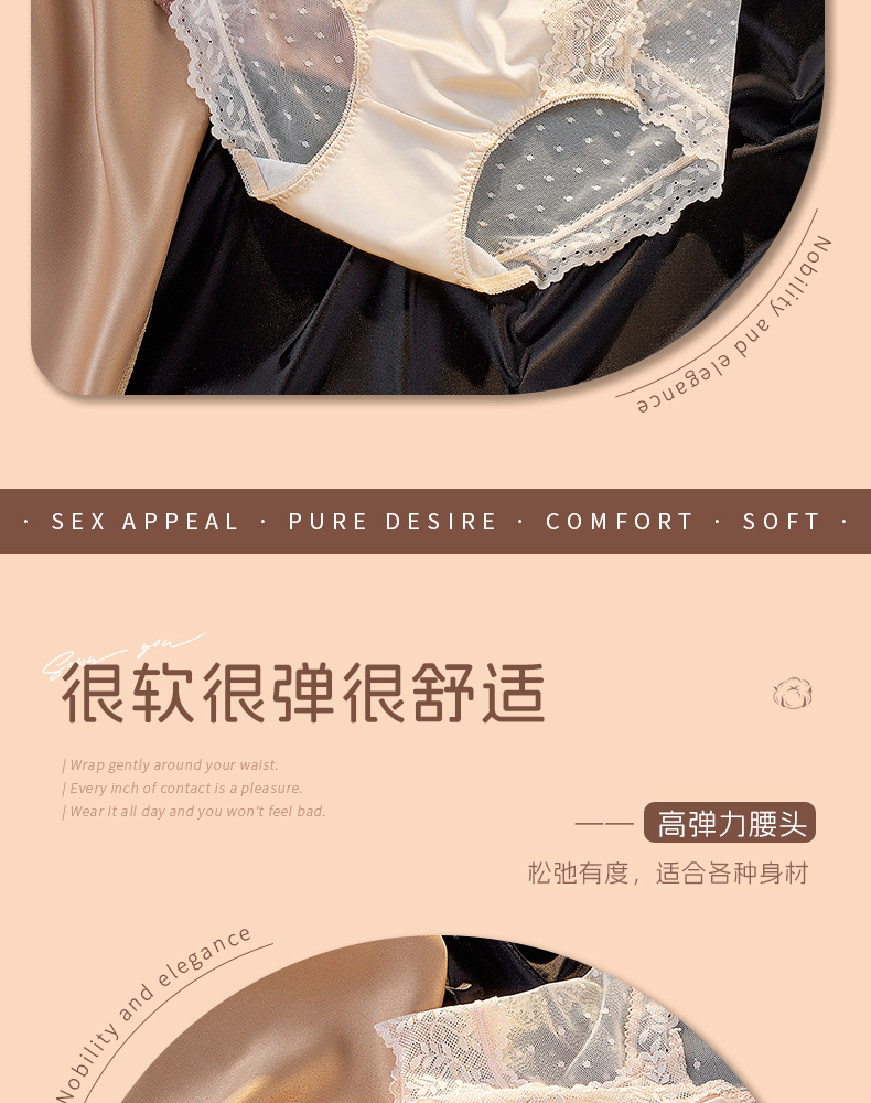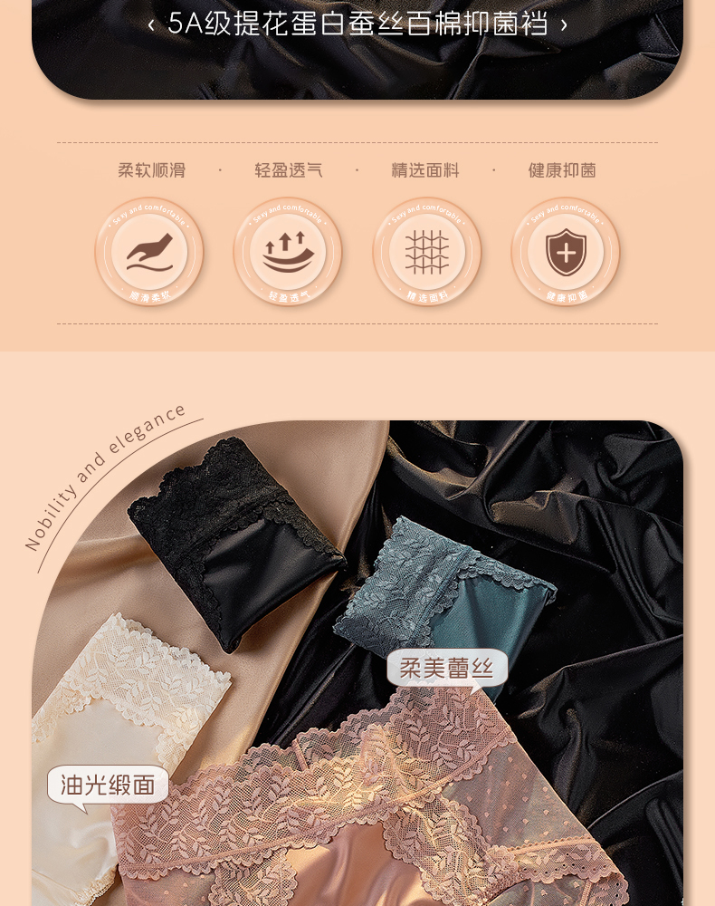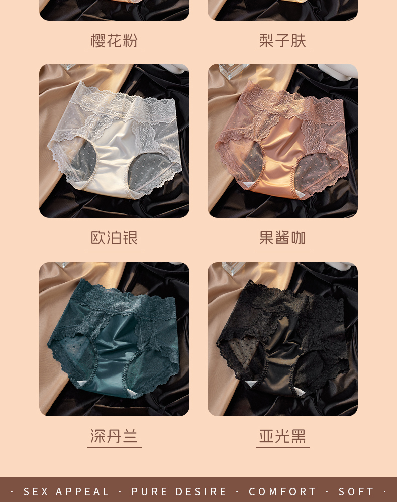 【5A抑菌】洁丽雅4条装女士中高腰轻奢蕾丝内裤抑菌棉裆舒适亲肤裸感三角裤
