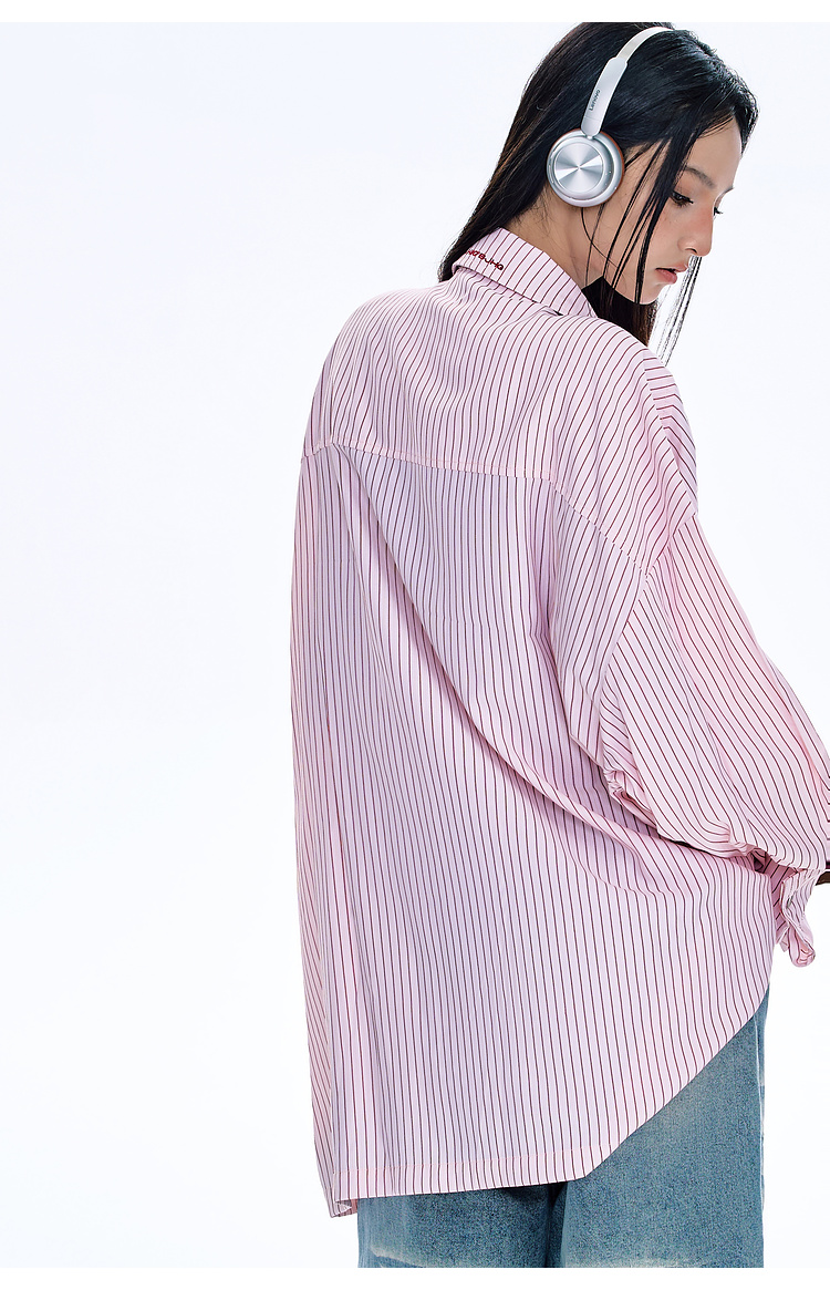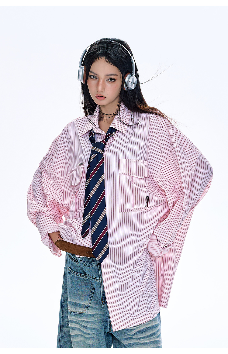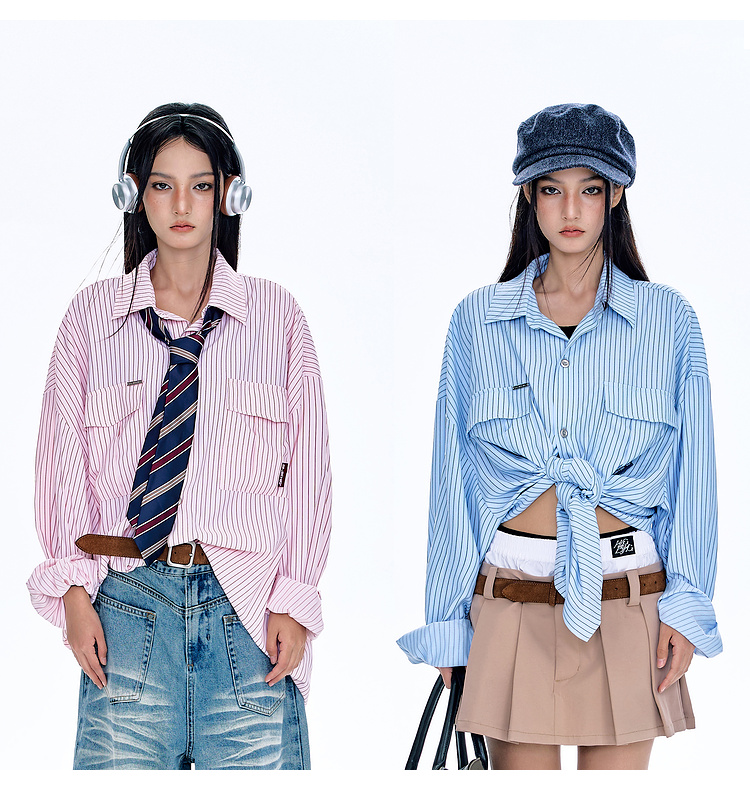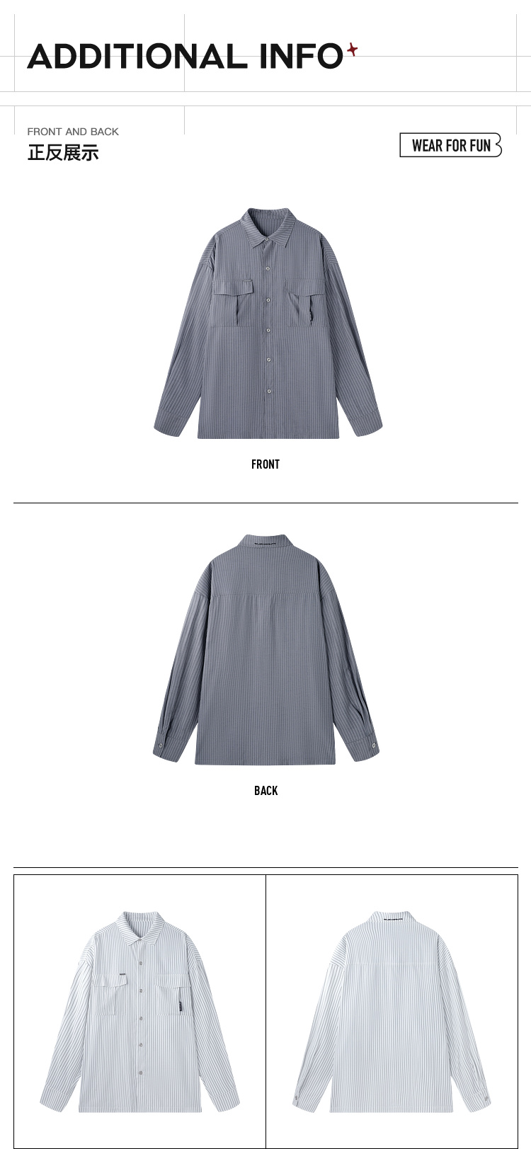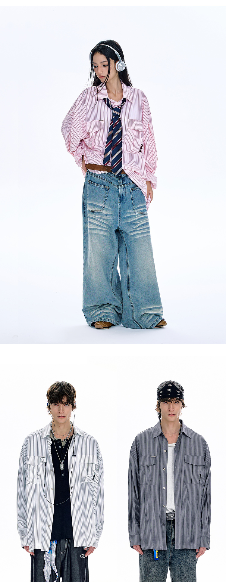 BJHG不计后果条纹长袖衬衫外套男春季新款休闲上衣百搭叠穿衬衣女
