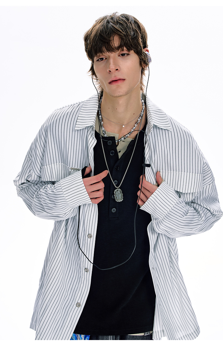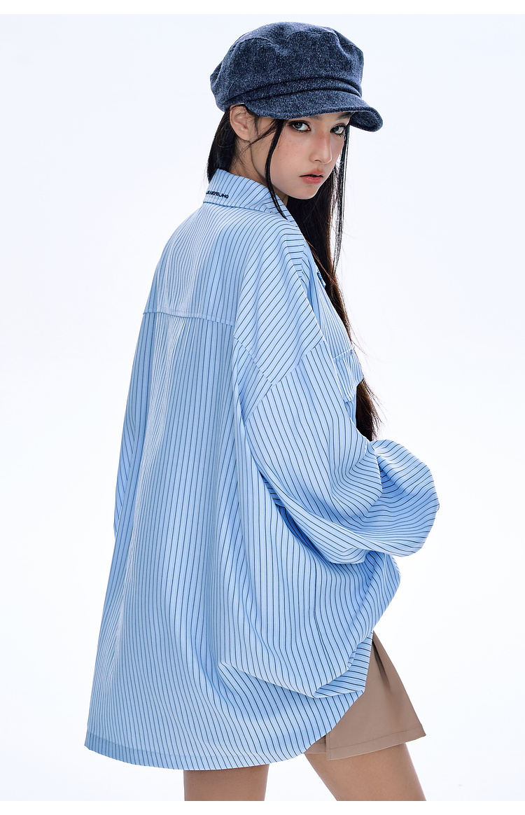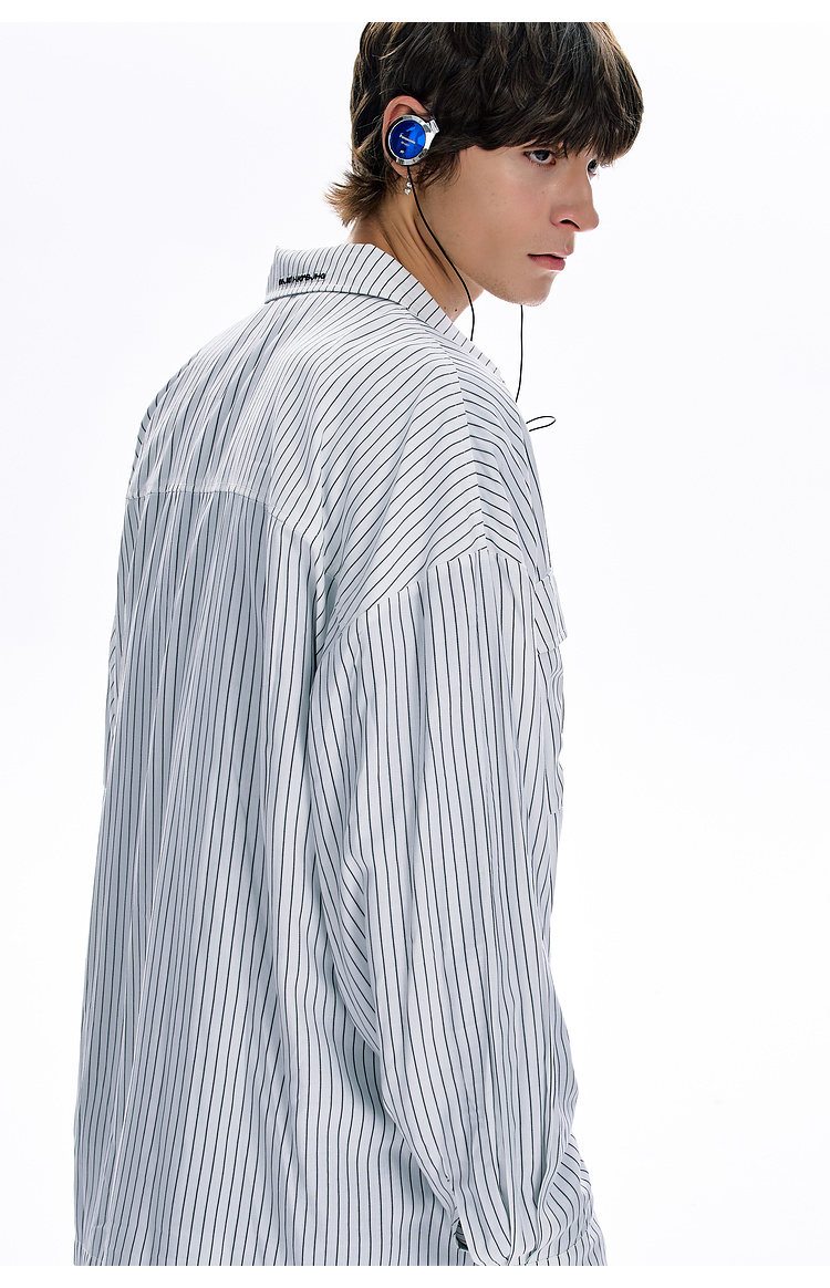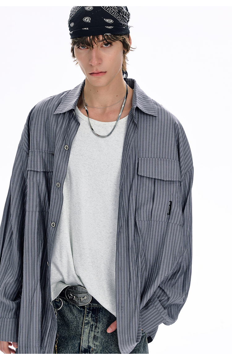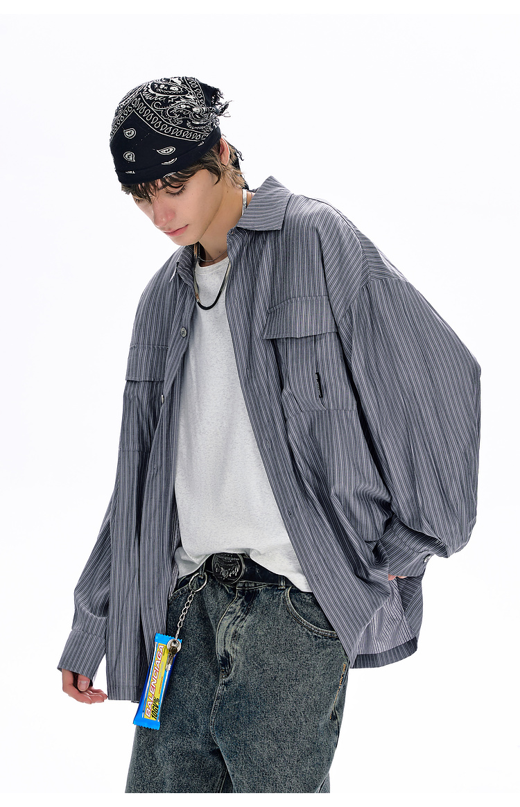 BJHG不计后果条纹长袖衬衫外套男春季新款休闲上衣百搭叠穿衬衣女