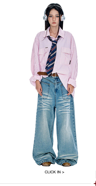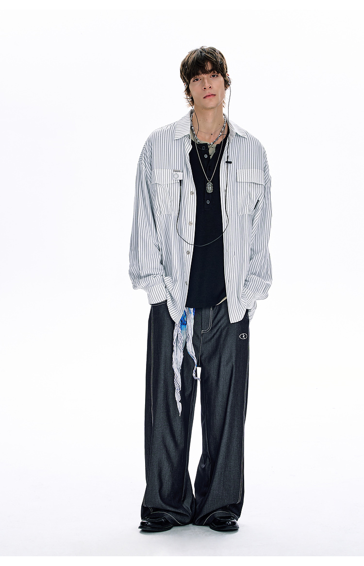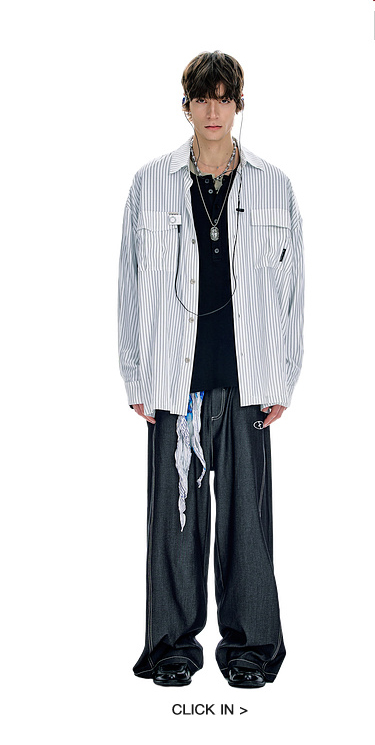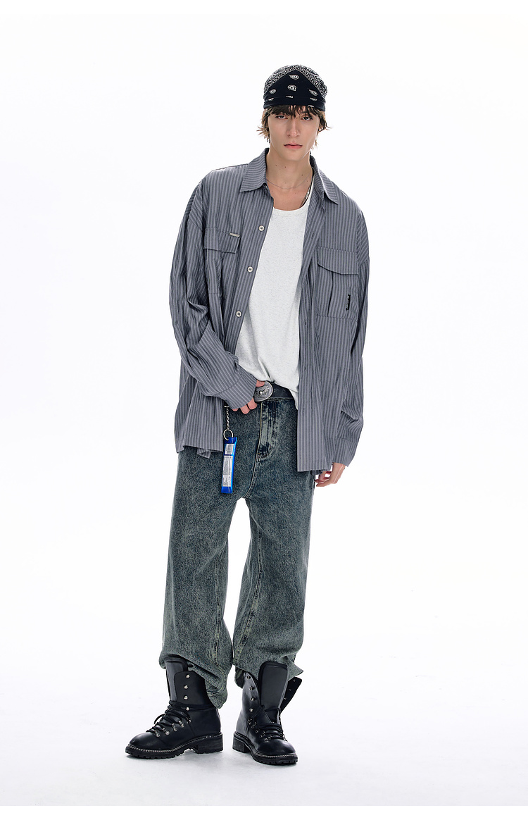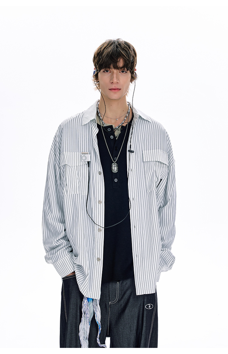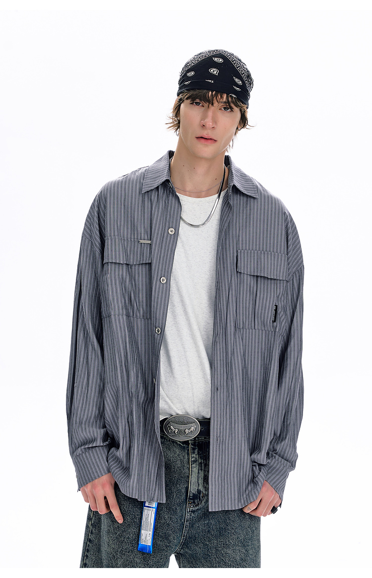 BJHG不计后果条纹长袖衬衫外套男春季新款休闲上衣百搭叠穿衬衣女