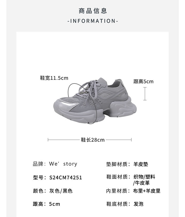 westory春季新款休闲厚底轻便舒适圆头百搭老爹鞋板S24CM74251