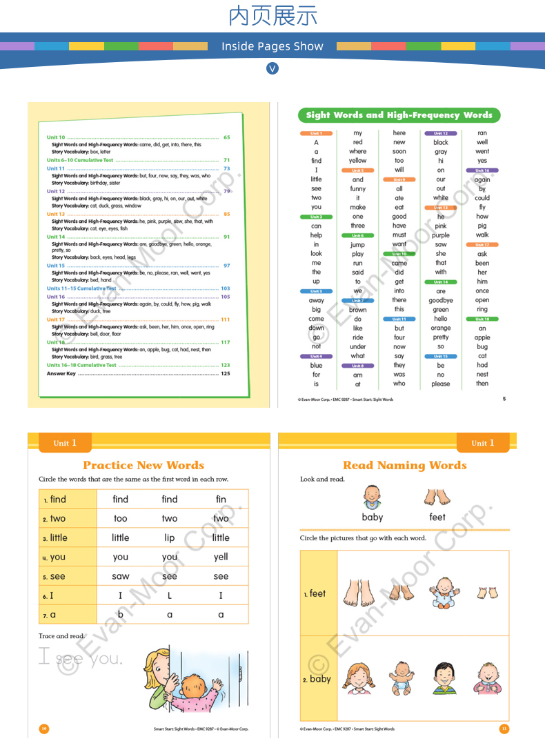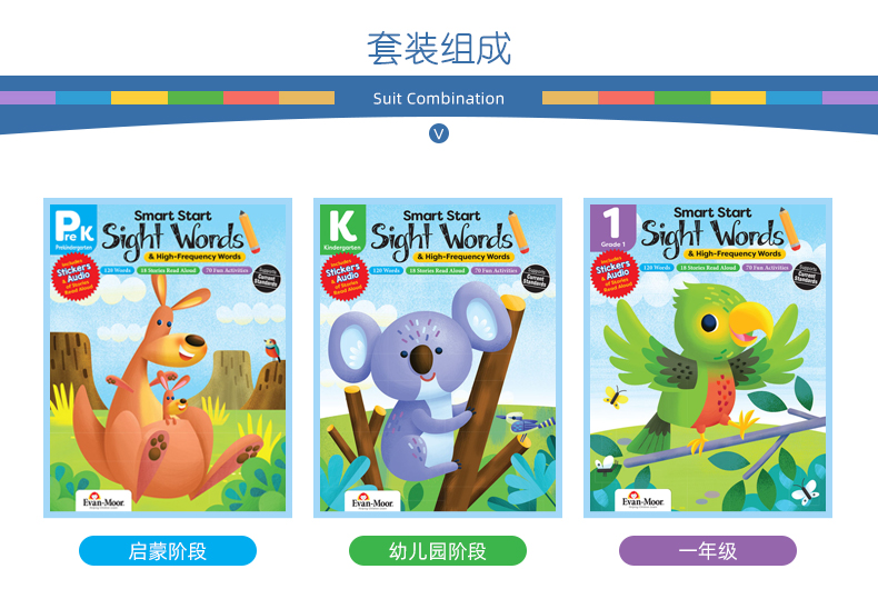 Evan-Moor Smart Start Sight Words Grade PreK-1 聪慧启蒙系列 高频词3册套装 美国加州教辅