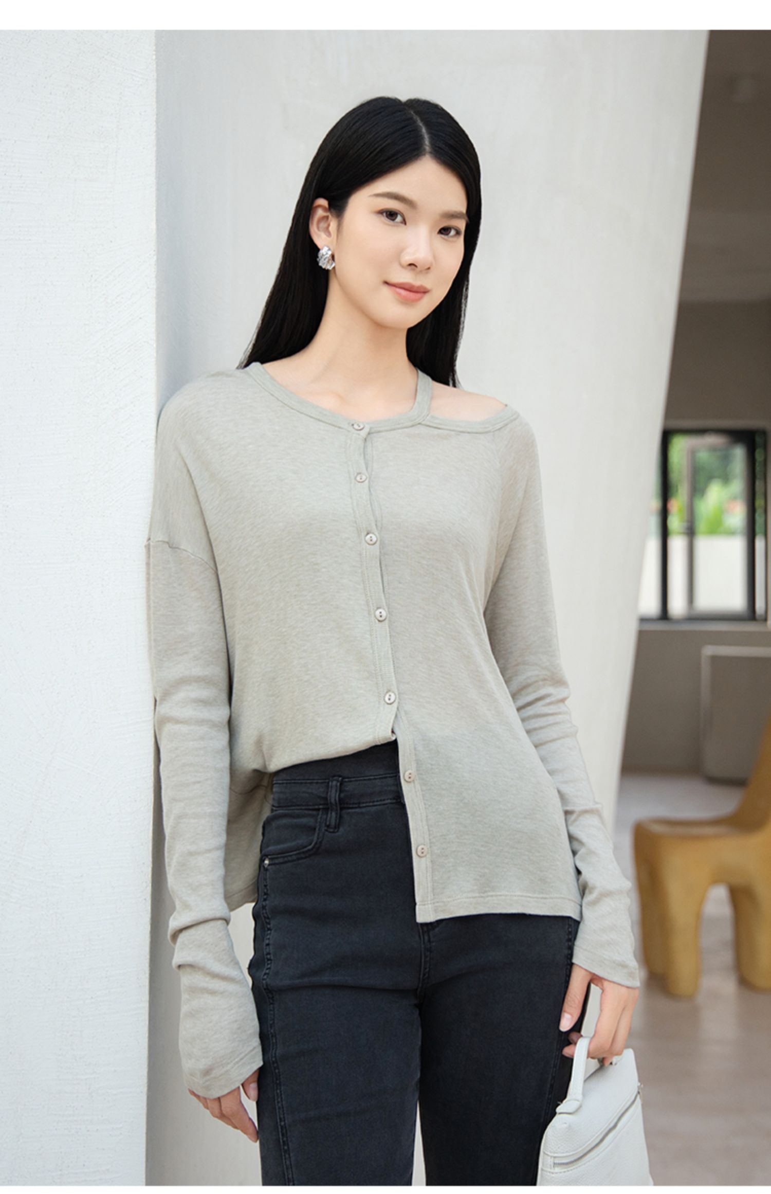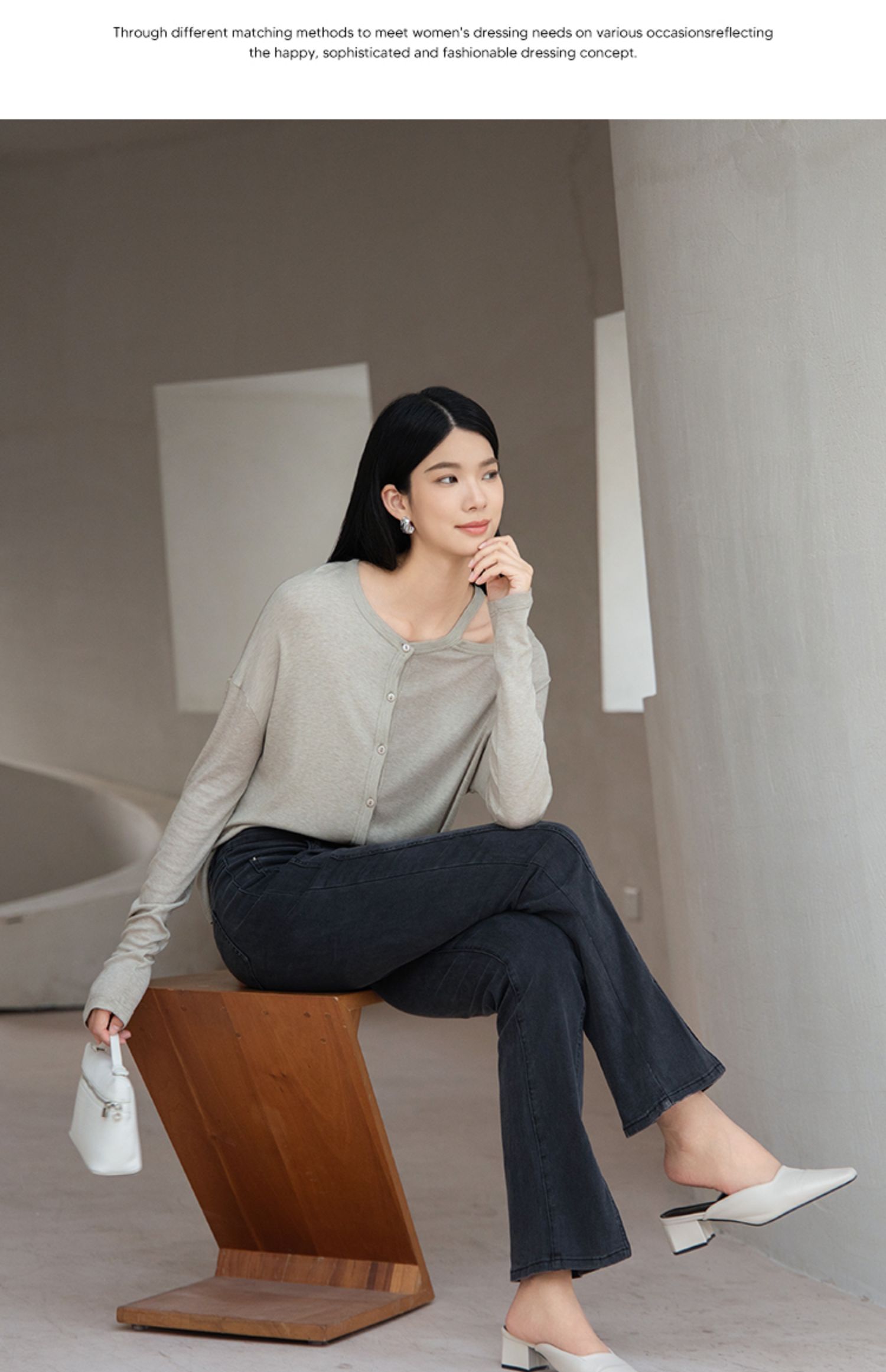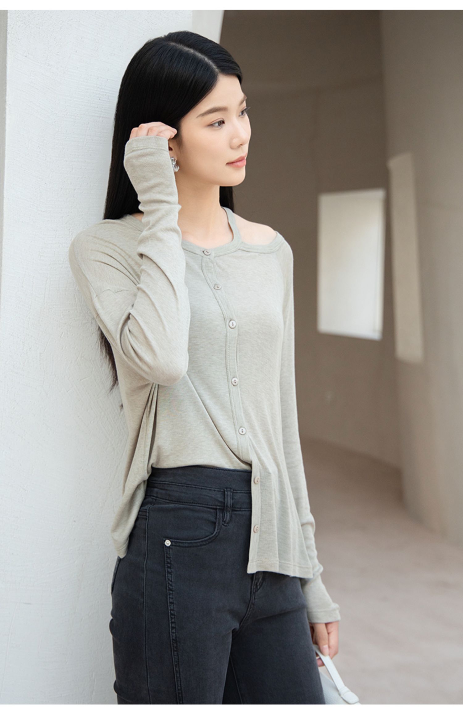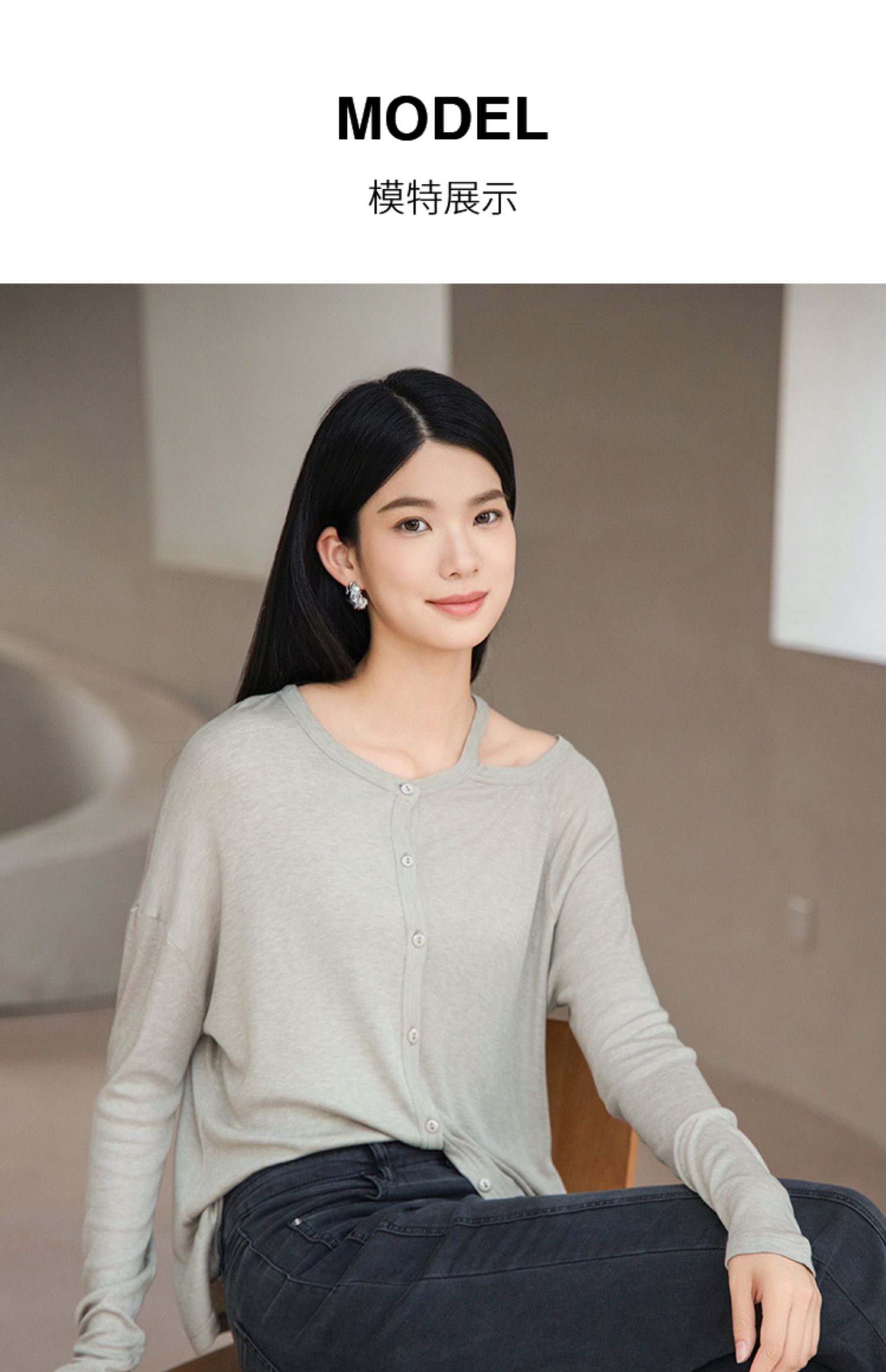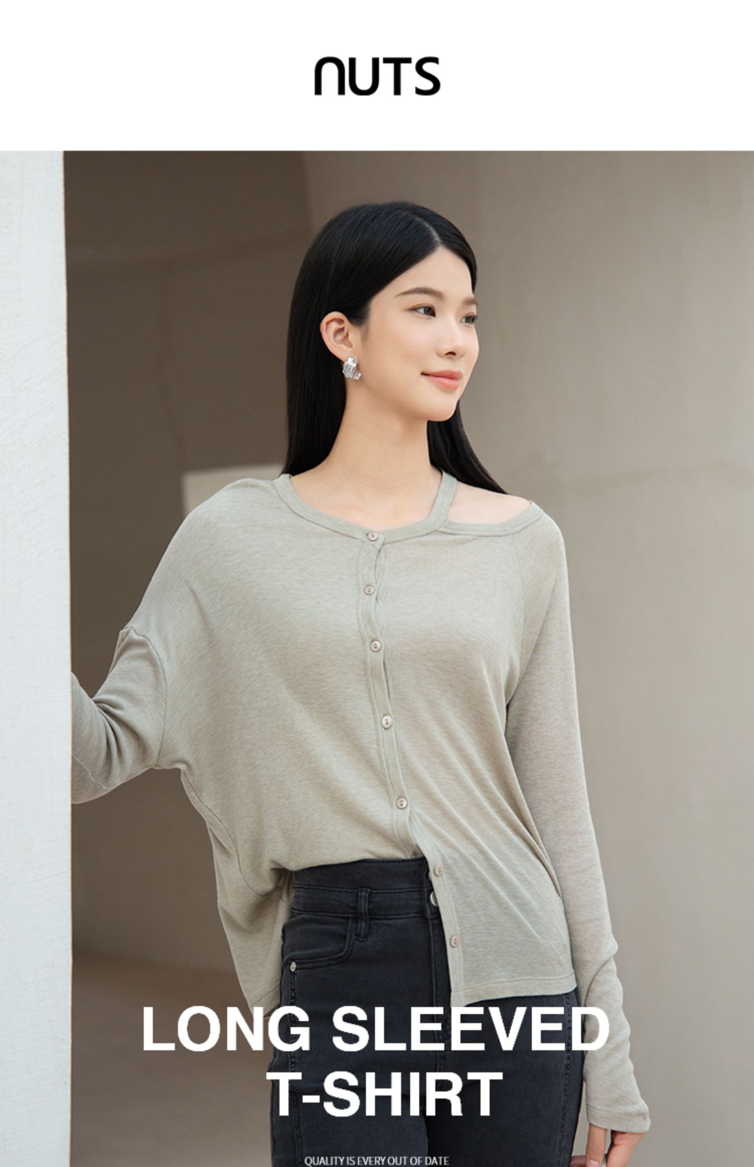NUTS2023秋季新款通勤气质小众设计感长袖T恤女4390202A1