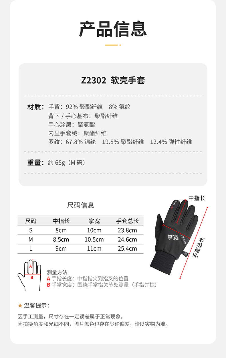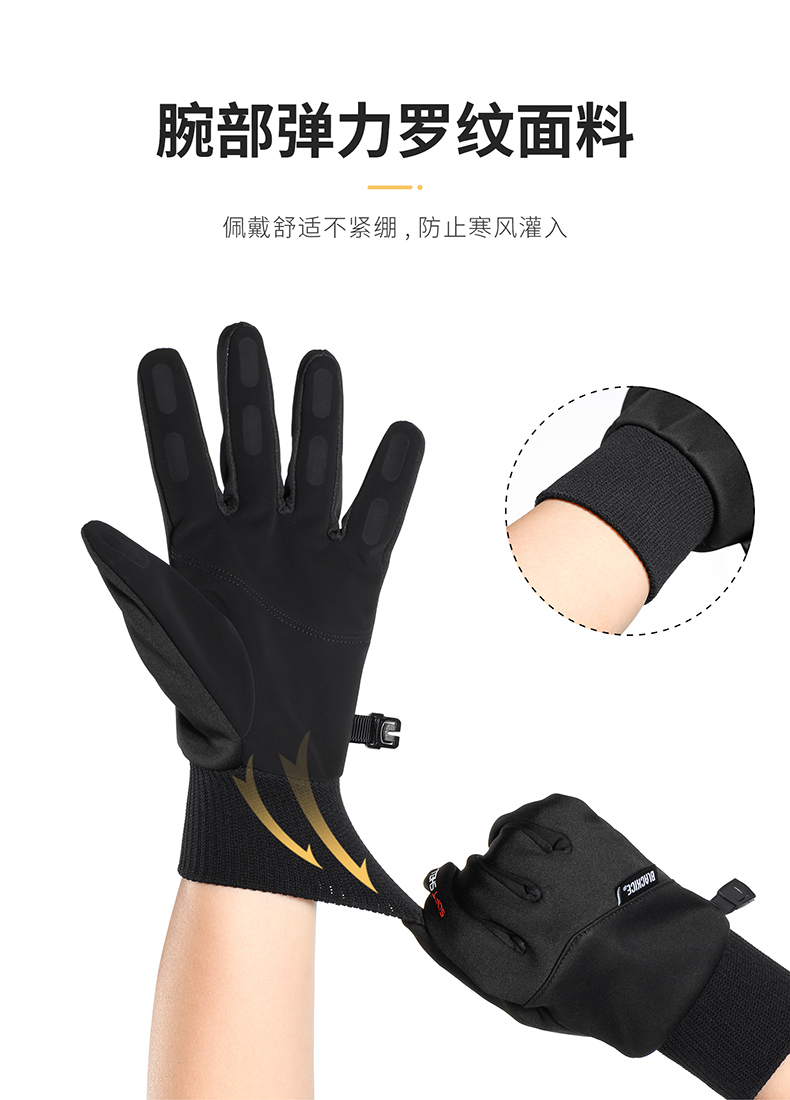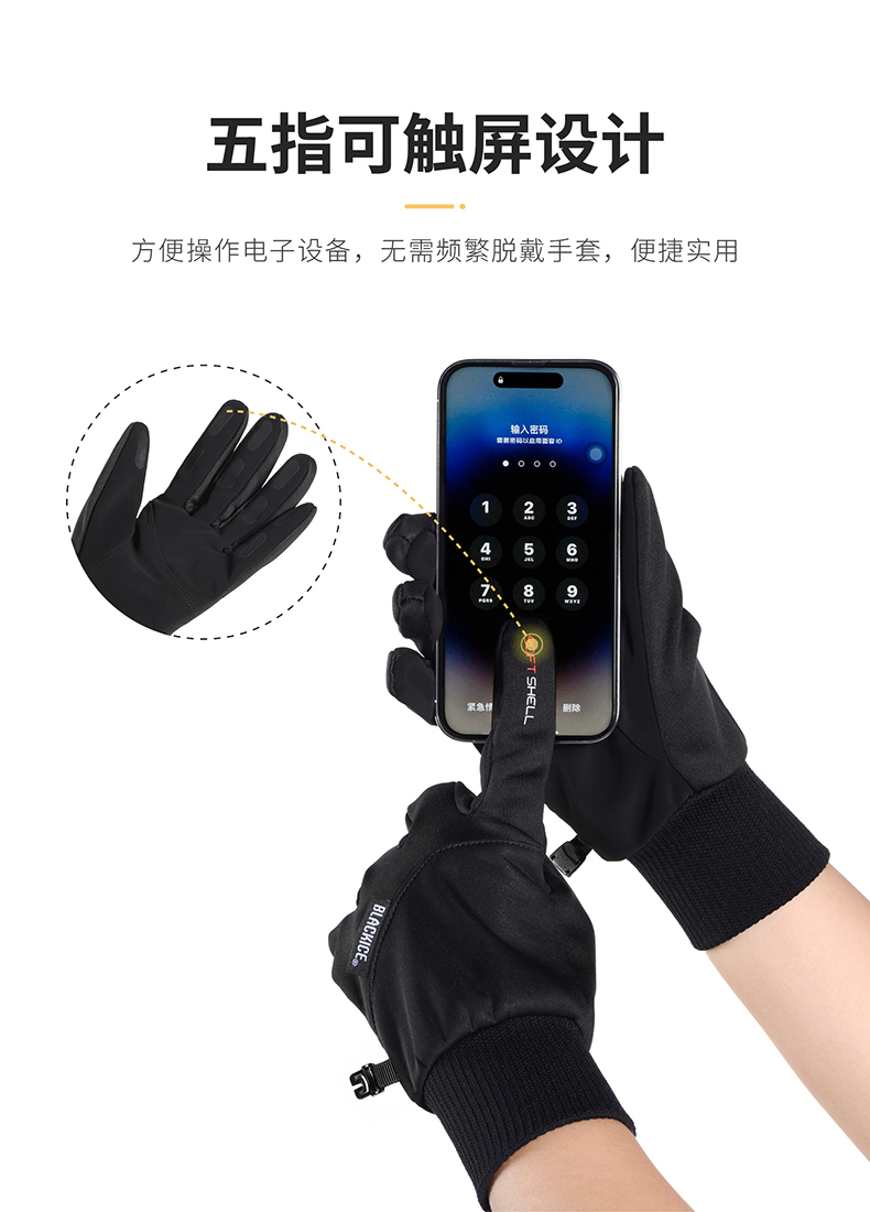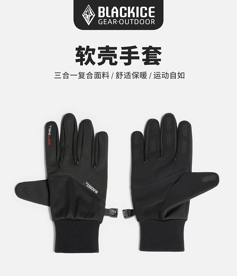 黑冰户外露营加绒保暖骑行徒步可触屏软壳手套男女舒适防滑Z2302