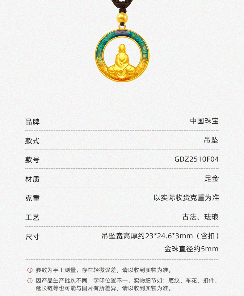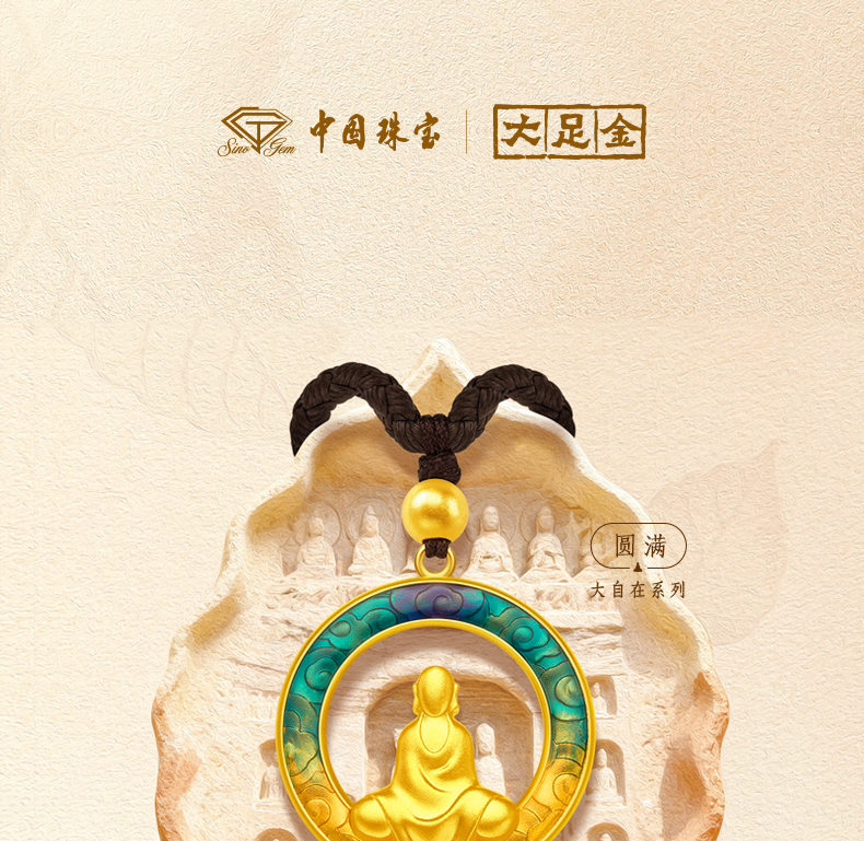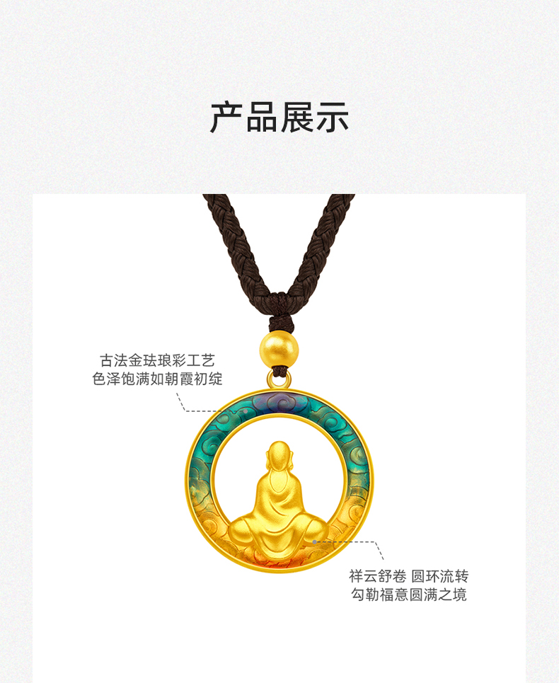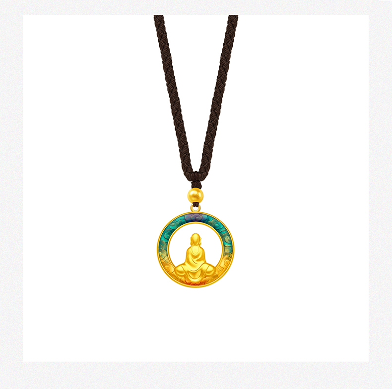 「大足金-大自在」足金圆满吊坠 古法黄金珐琅挂坠