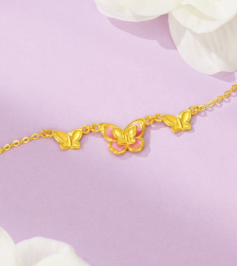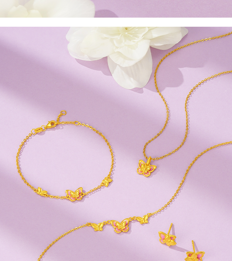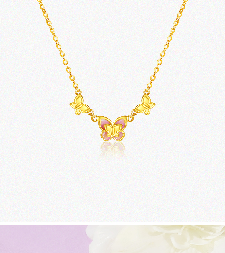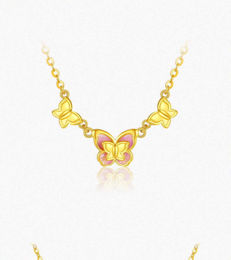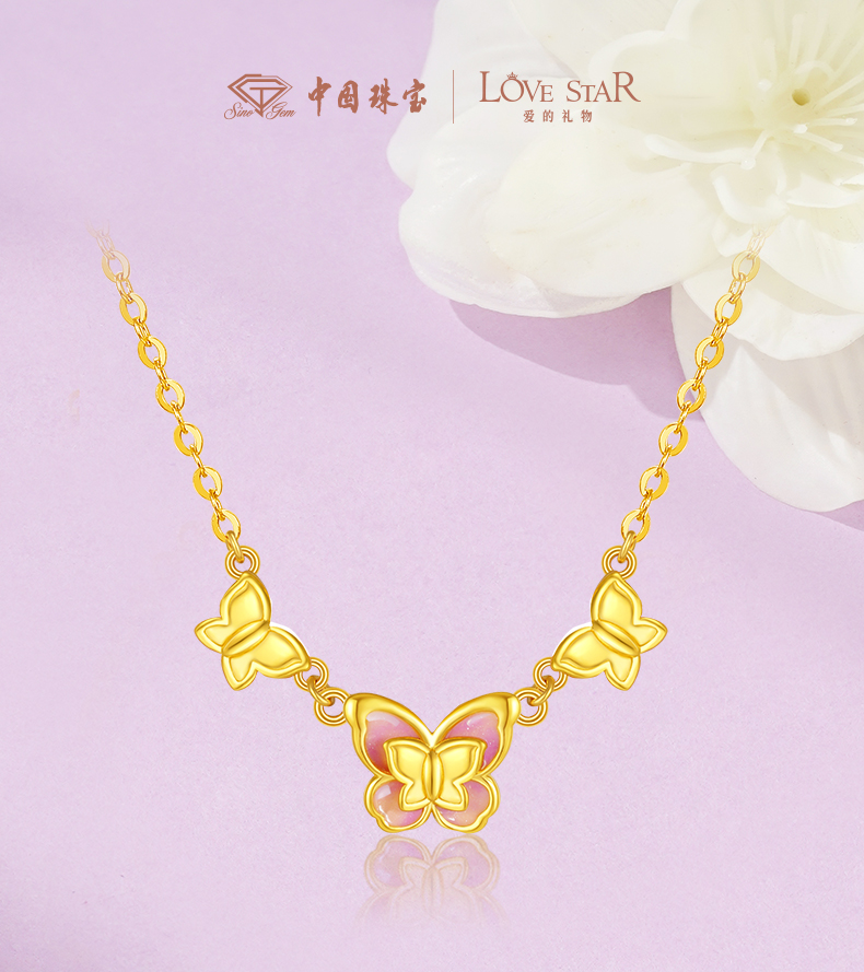 「LOVESTAR-爱的礼物」黄金爱羽成蝶项链 足金蝴蝶套链【Y】