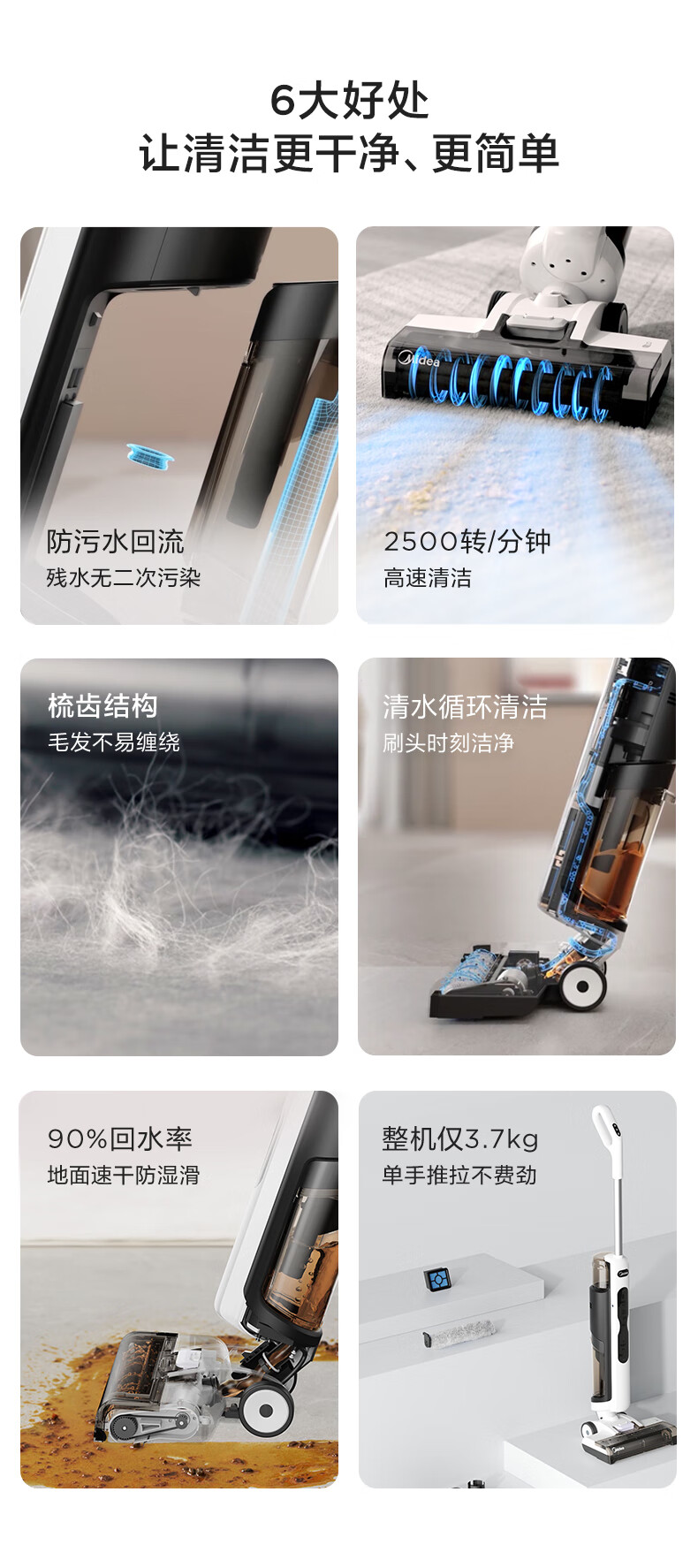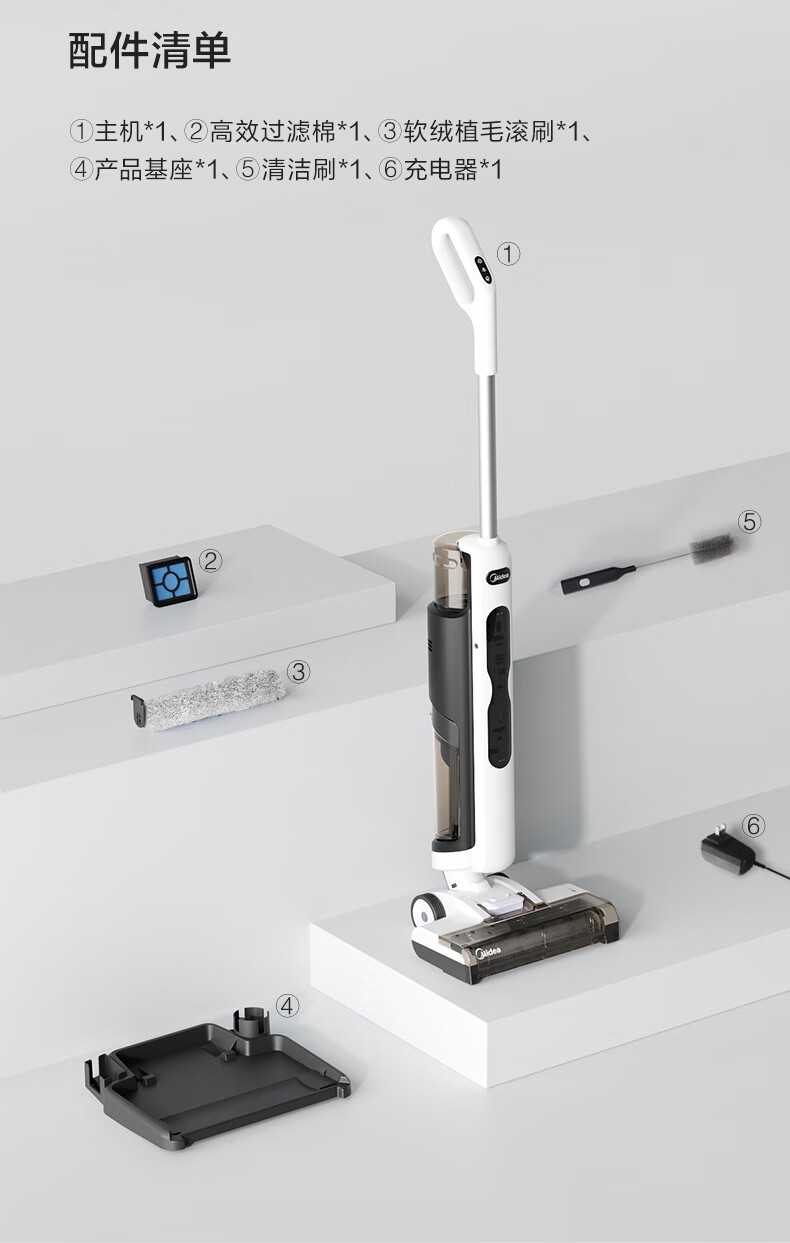 美的(Midea) 深度清洁无尘感洗地机X7家用吸拖洗一体自动清洁机 无线智能除菌洗地机 X7洗地机