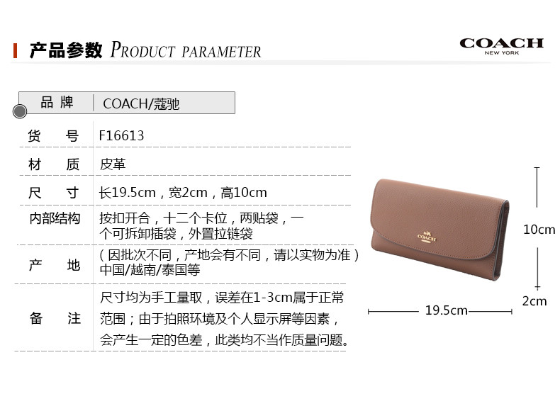 COACH/蔻驰女士皮质长款钱包手拿包16613