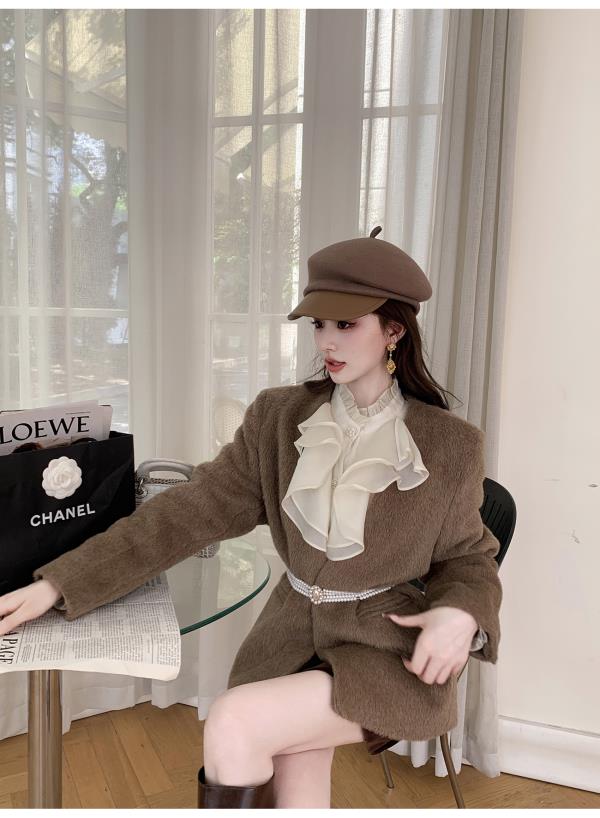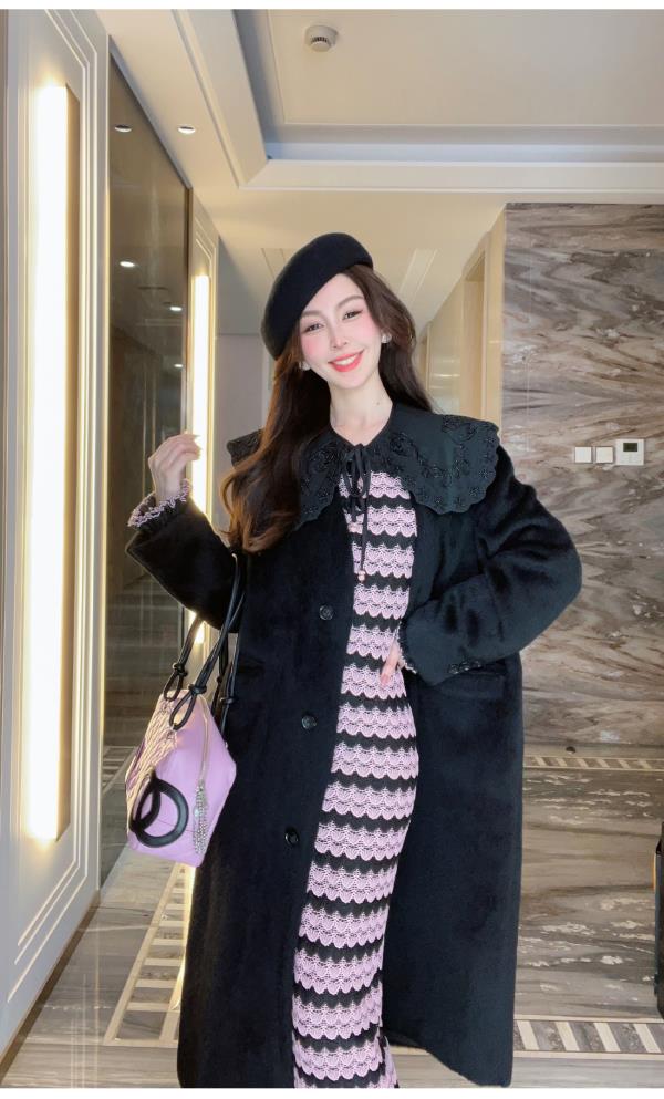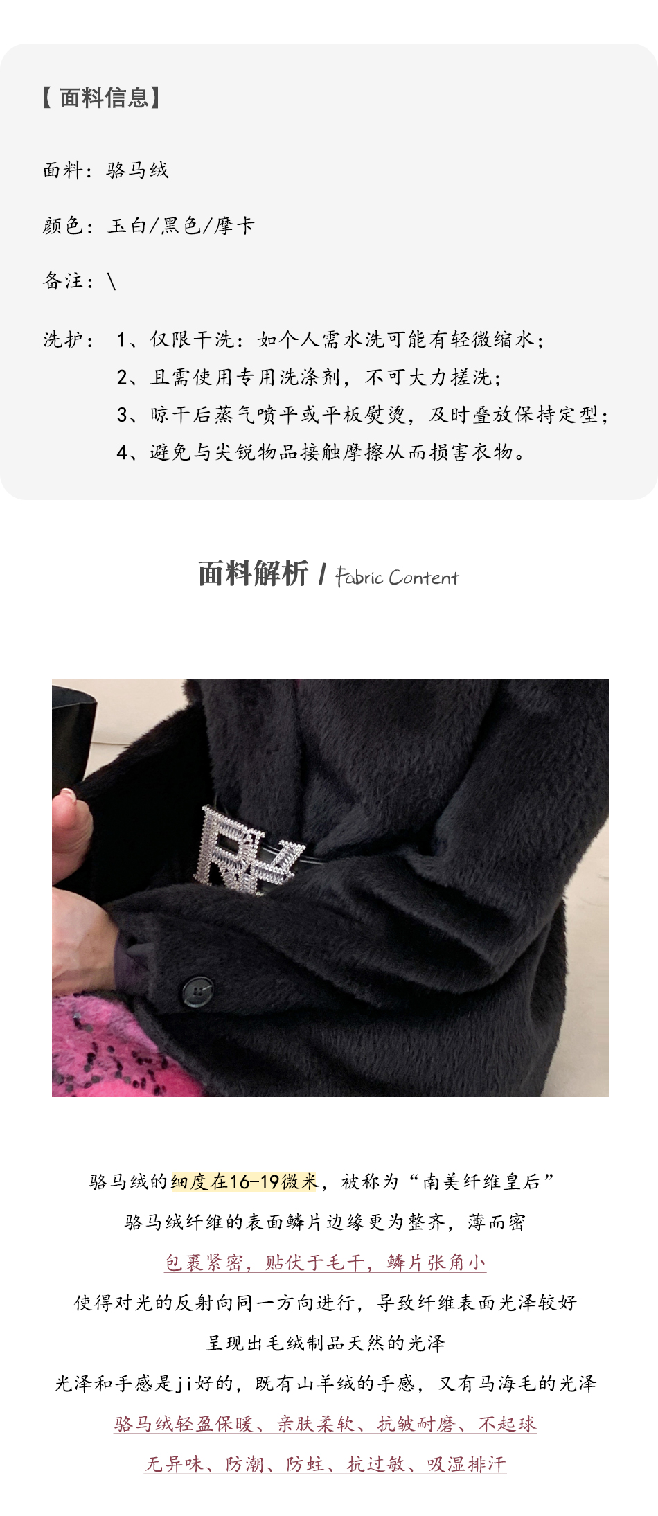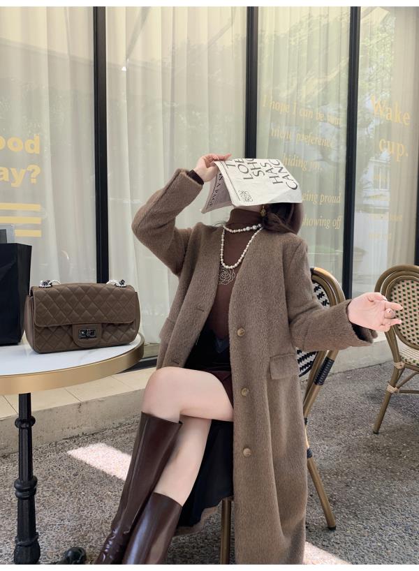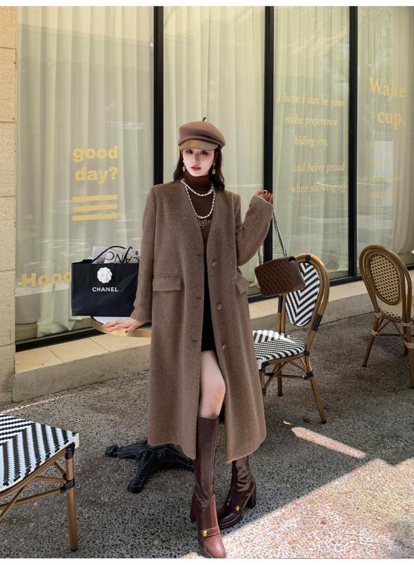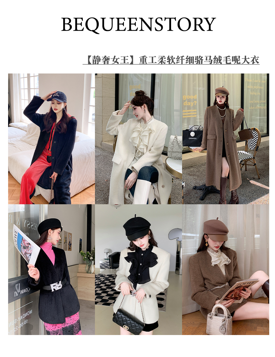 【孤品样衣,不退不换】【静奢女王】重工柔软纤细骆马绒秋冬羊毛毛呢大衣