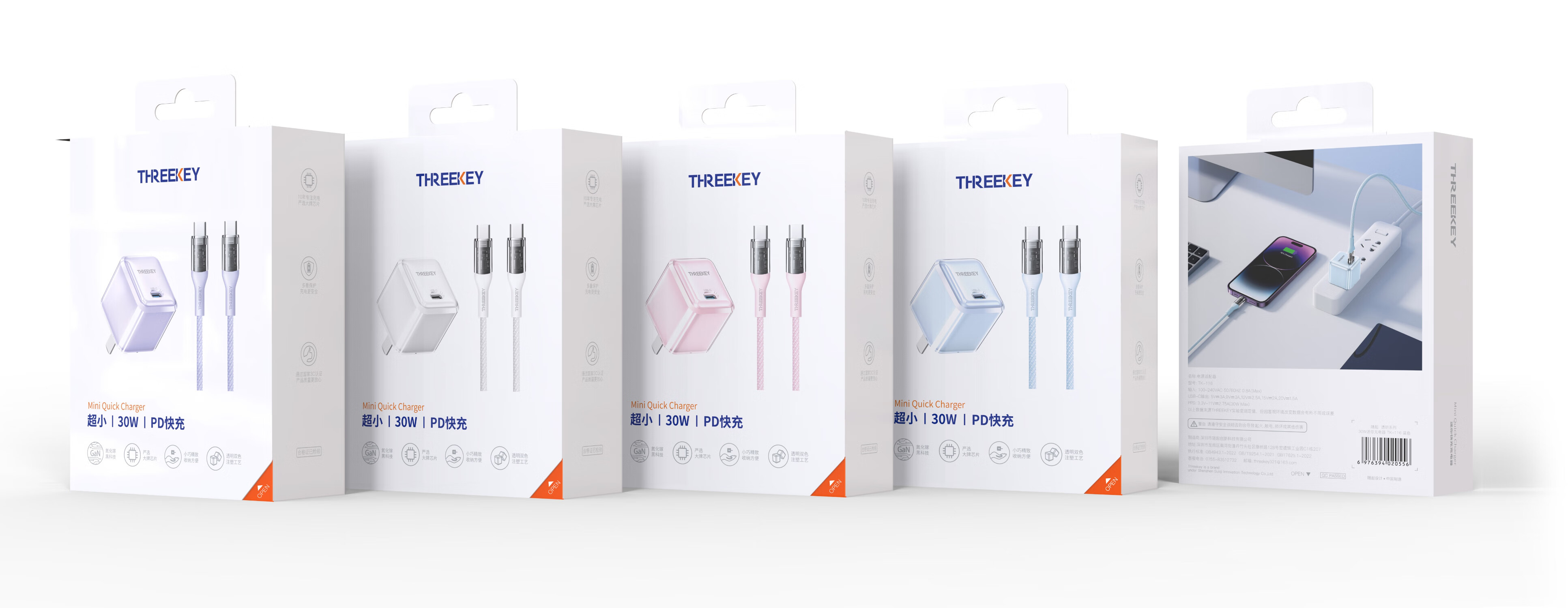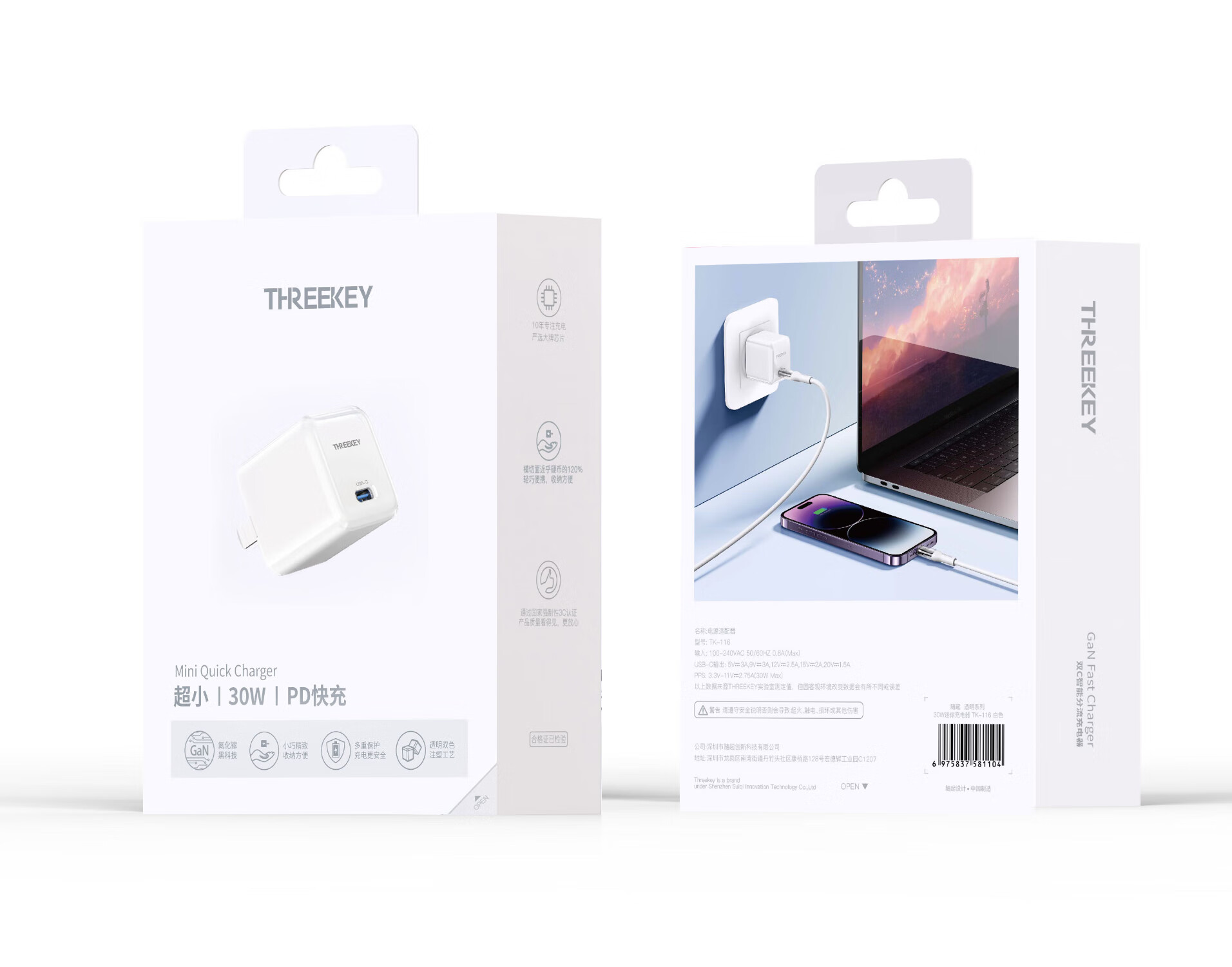 THREEKEY TK-116 30W智能快充充电套装 TK-116