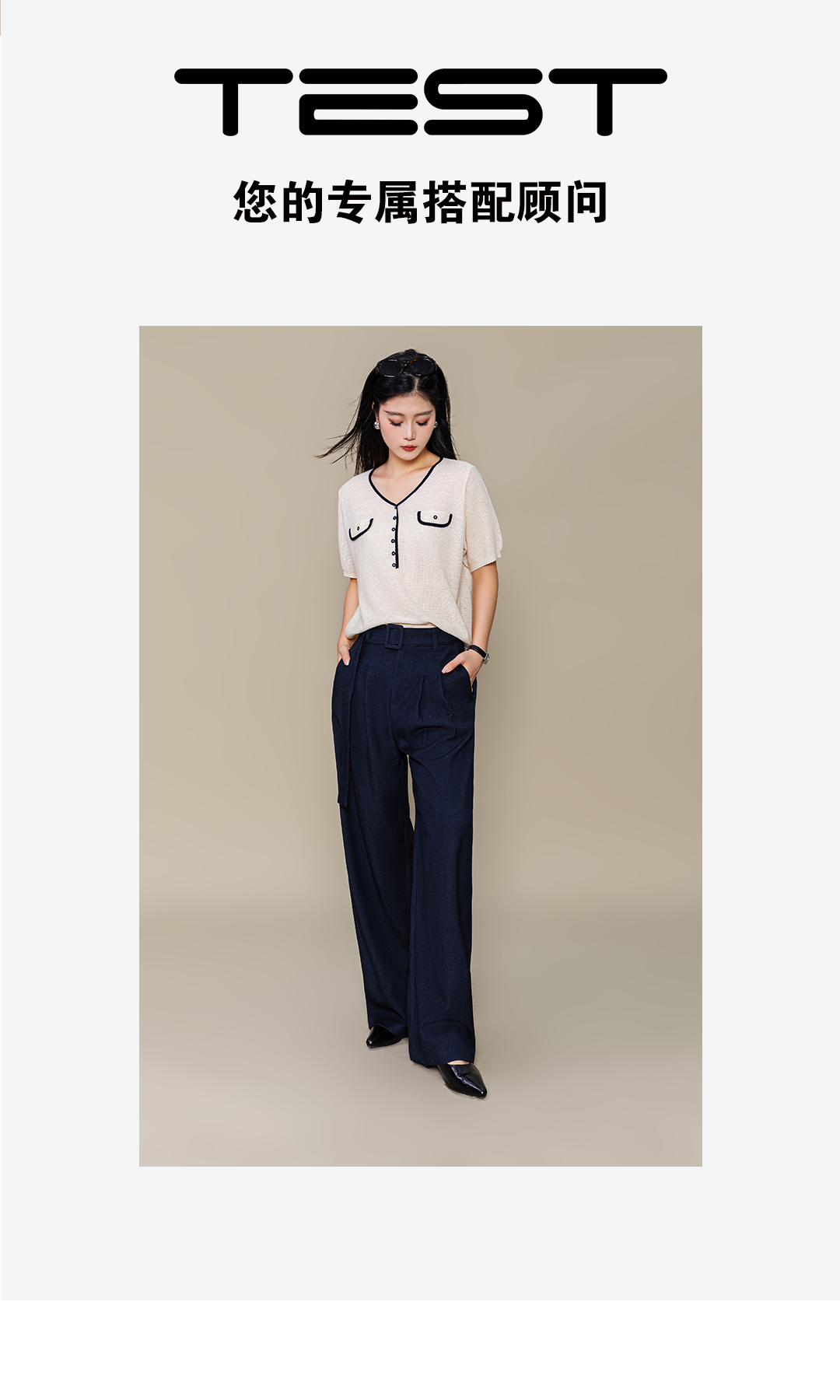 秋上新都市通勤风藏蓝色阔腿休闲裤休闲裤3253032 商品图2