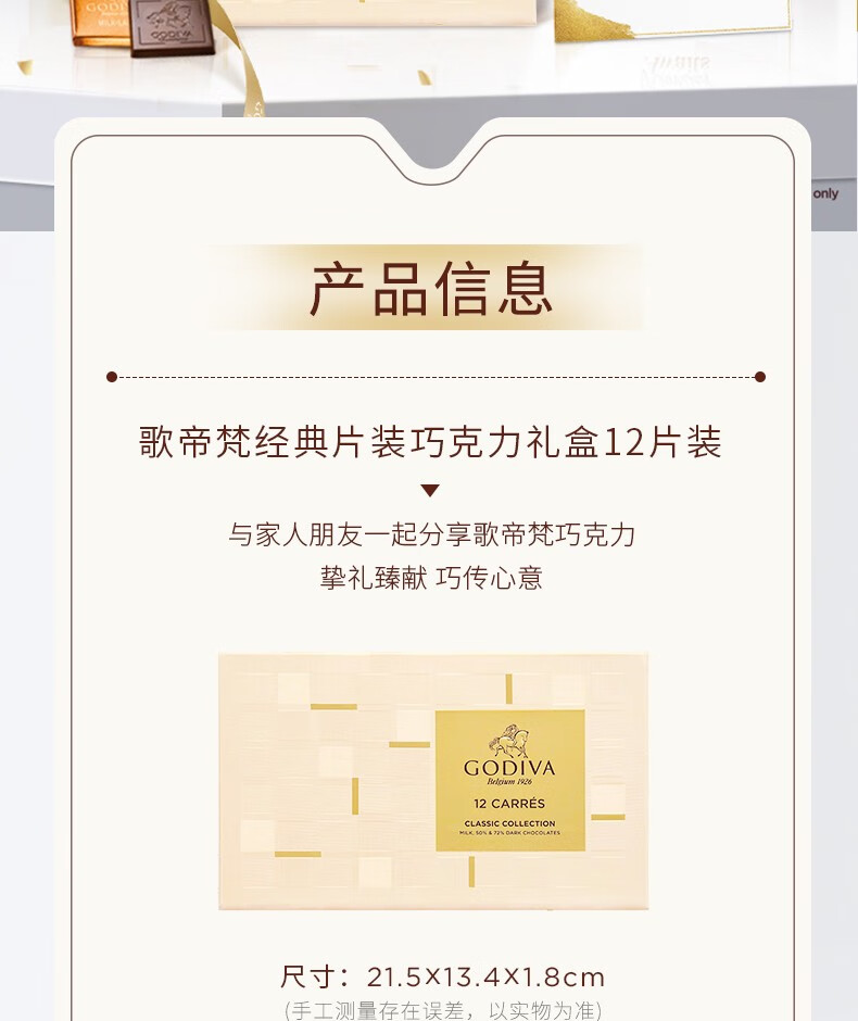 歌帝梵新款12片装巧克力礼盒60g/044036 醇香动人经典片状