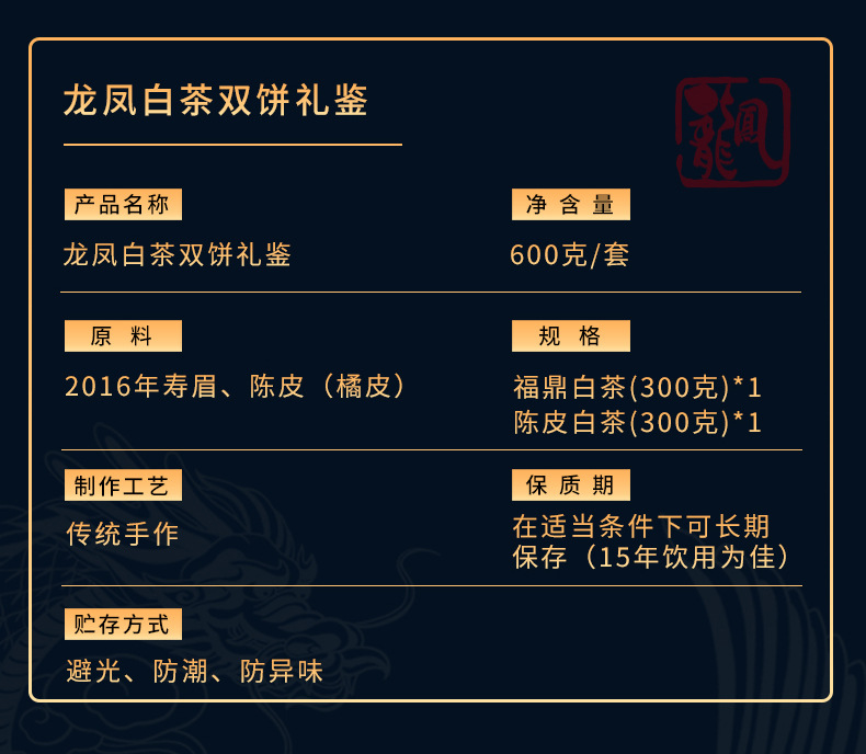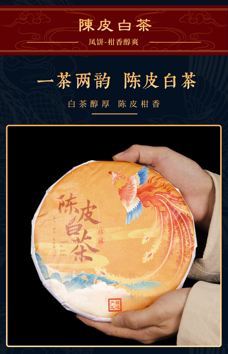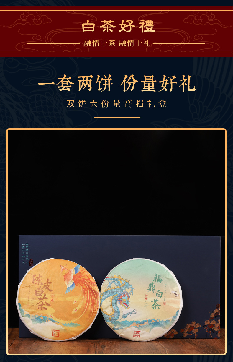 福鼎白茶饼【陈皮白茶饼】双饼高山日晒寿眉茶饼 茶叶礼盒装节日送礼长辈朋友