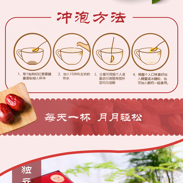 红河建水 枸杞红枣黑糖姜茶 12g×20包/盒 商品图2