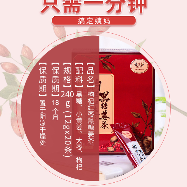红河建水 枸杞红枣黑糖姜茶 12g×20包/盒 商品缩略图0 红河建水 枸杞红枣黑糖姜茶 12g×20包/盒 商品缩略图1 红河建水 枸杞红枣黑糖姜茶 12g×20包/盒 商品缩略图2