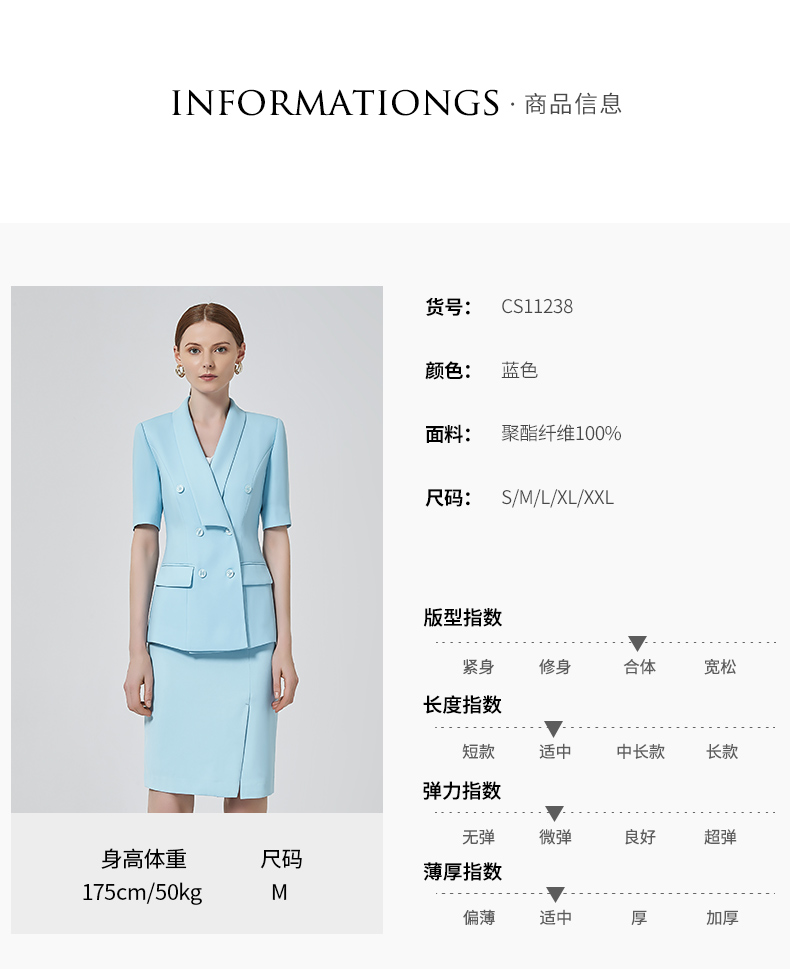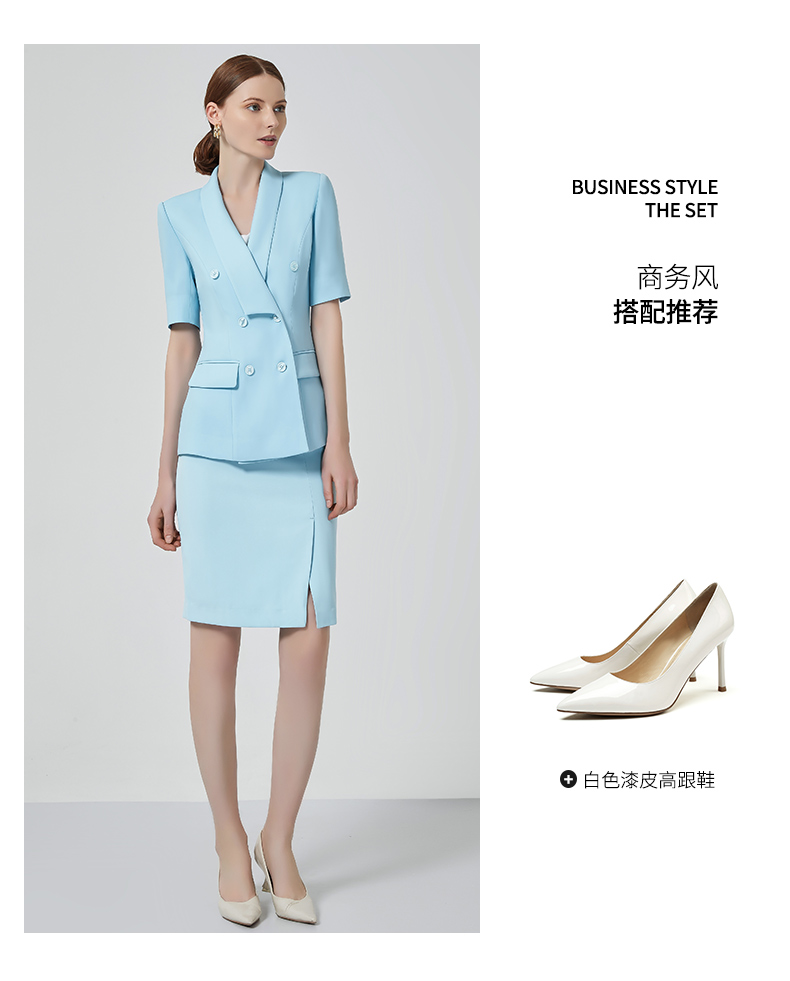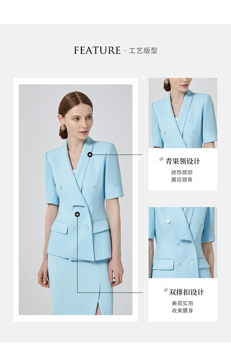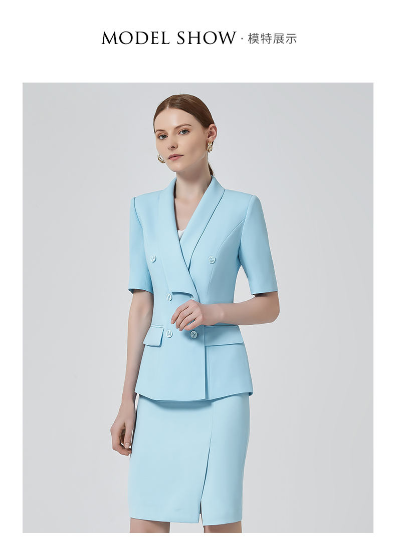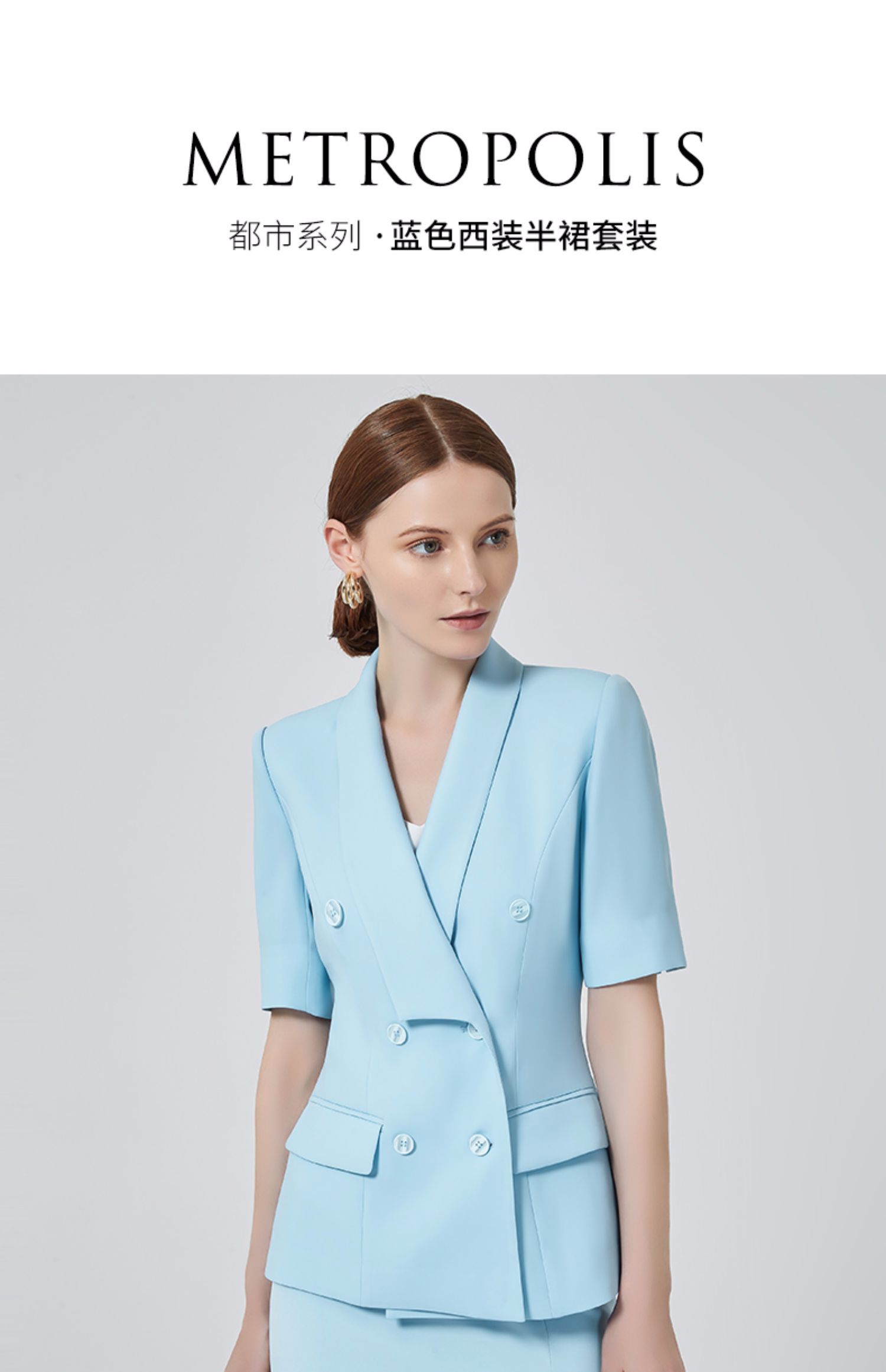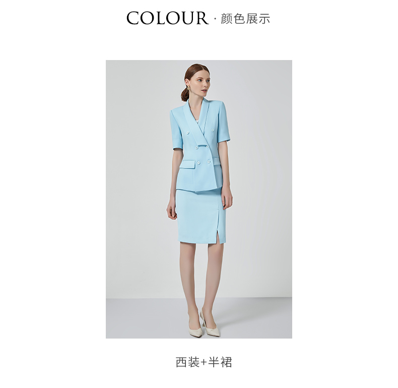 IWY/韩版干练职业套装女工装装短袖西装套裙气质商务正装两件套C11238+S10223