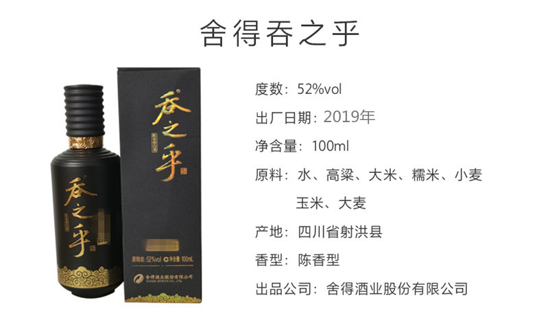 【100ml小酒版三瓶】52度五粮液景区纪念酒浓香型2018年出厂+53度舍得吞之乎酱香型2013年出厂+52度舍得吞之乎陈香型2019年出厂