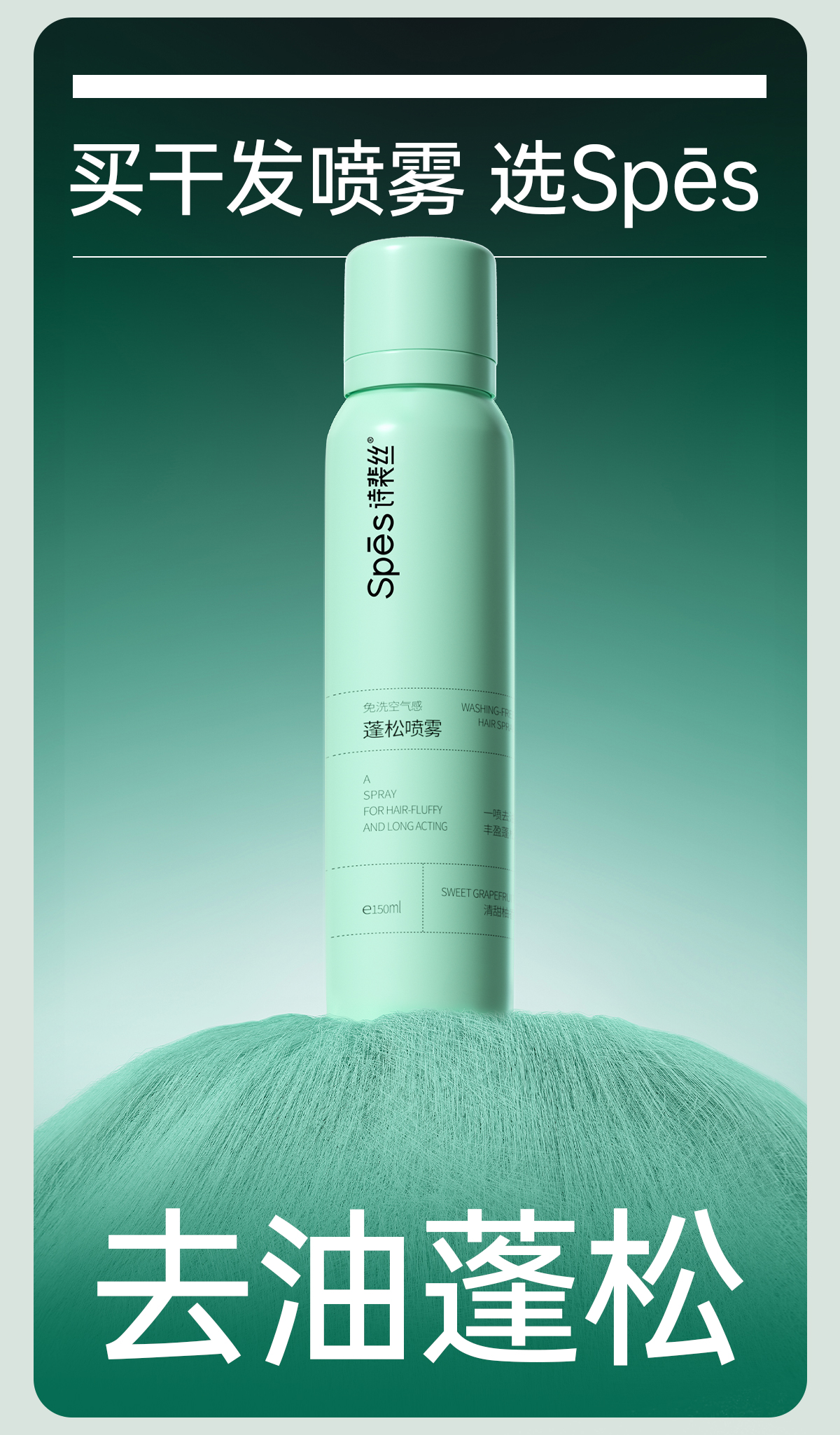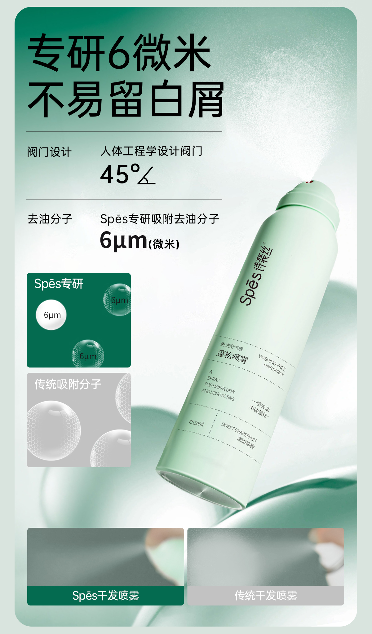 诗裴丝免洗空气感蓬松喷雾150ml 植萃滋养,创新喷⼝设计,⼀喷即蓬