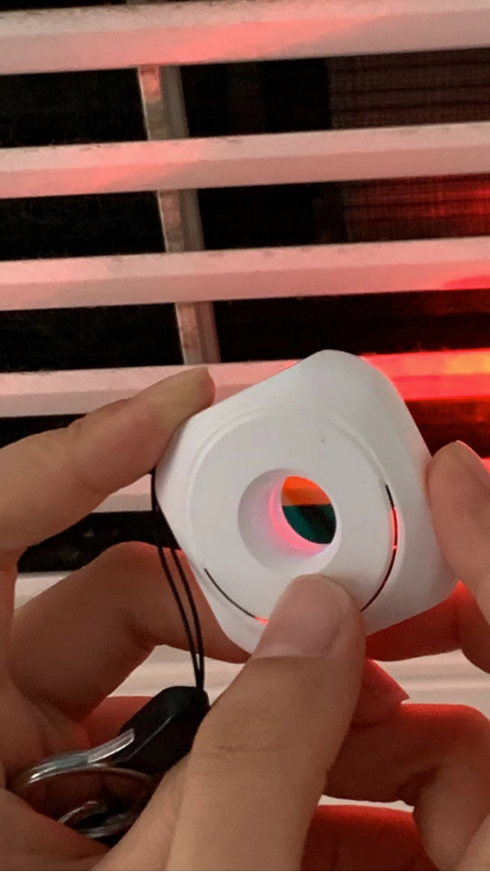 长亮模式持续观察 频闪模式高亮反光进一步加强甄别 SOS模式灯光安全闪烁 不断地发出红外线 在黑暗中轻松找到那些隐藏的“眼睛” 眼睛透过中间的视窗观察 就能看到she像头的红色反光点 从而找到she像头的位置 私人空间隐私安全稳稳拿捏~ 一份用心和守护让爱情更加甜蜜