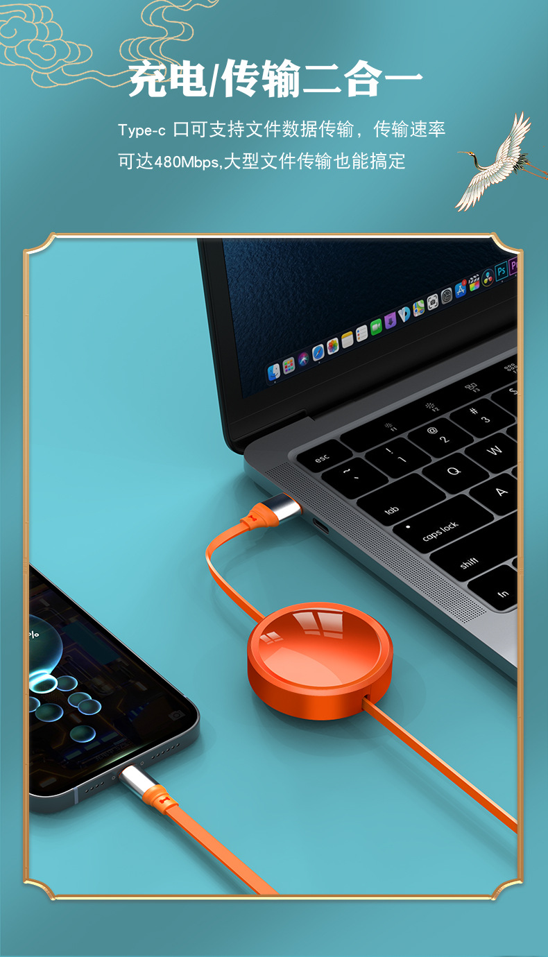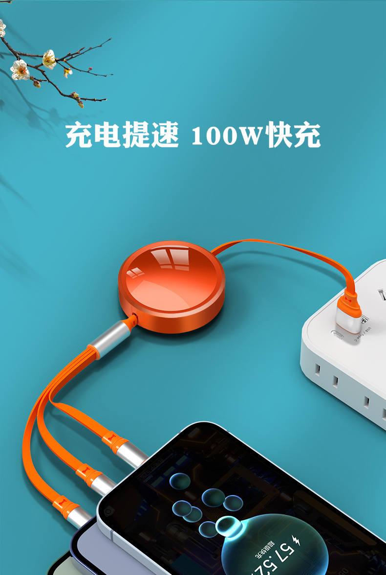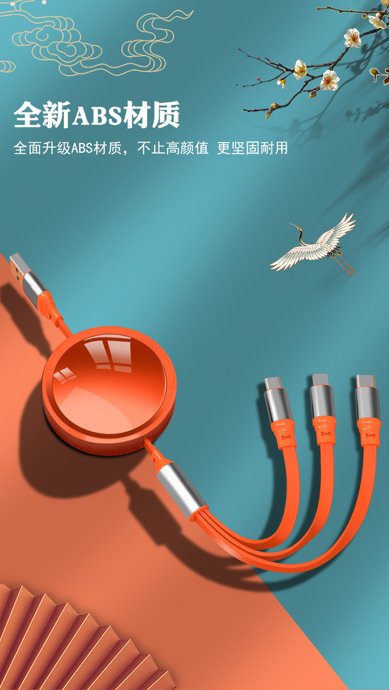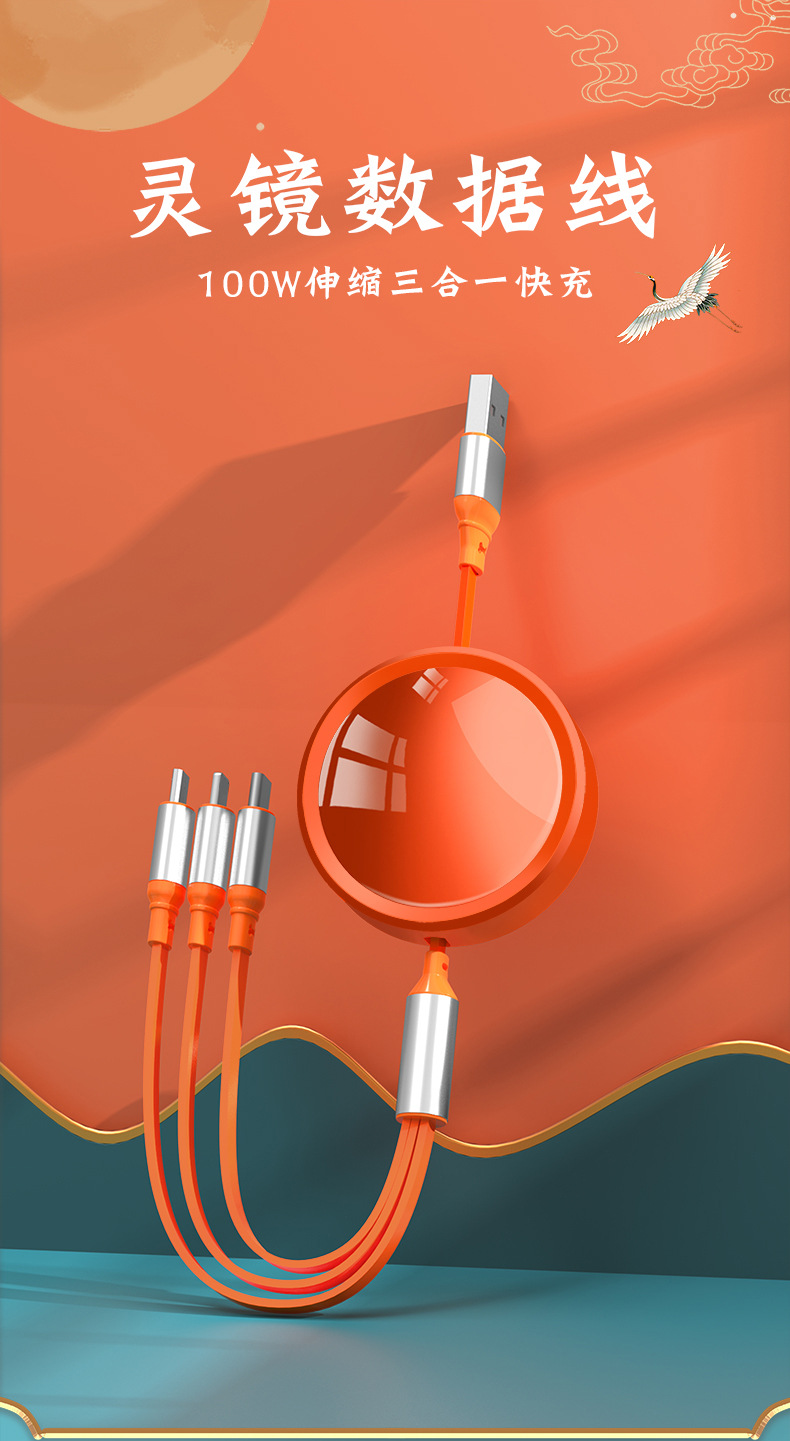 新年好物!【礼盒装!灵境三合一快充数据线】龙年小礼品套装100W三合一快充数据线创意伴手礼,双涡轮增强滑杆,拉扯顺滑,久拉不坏。