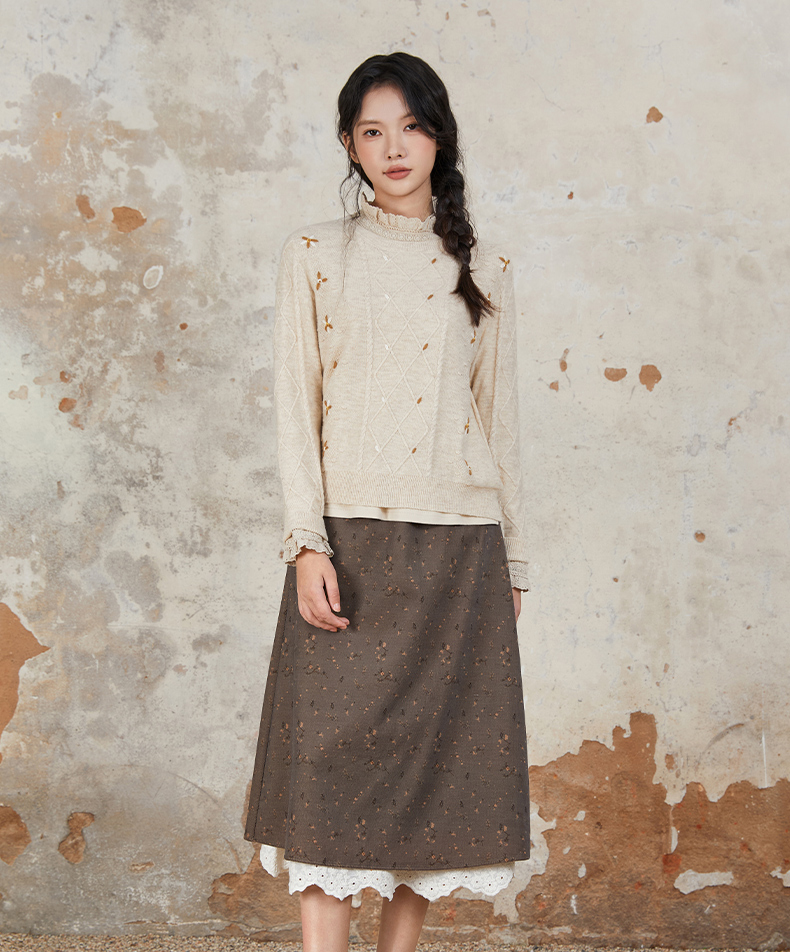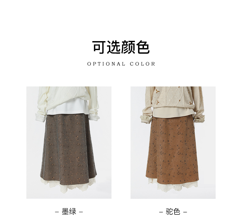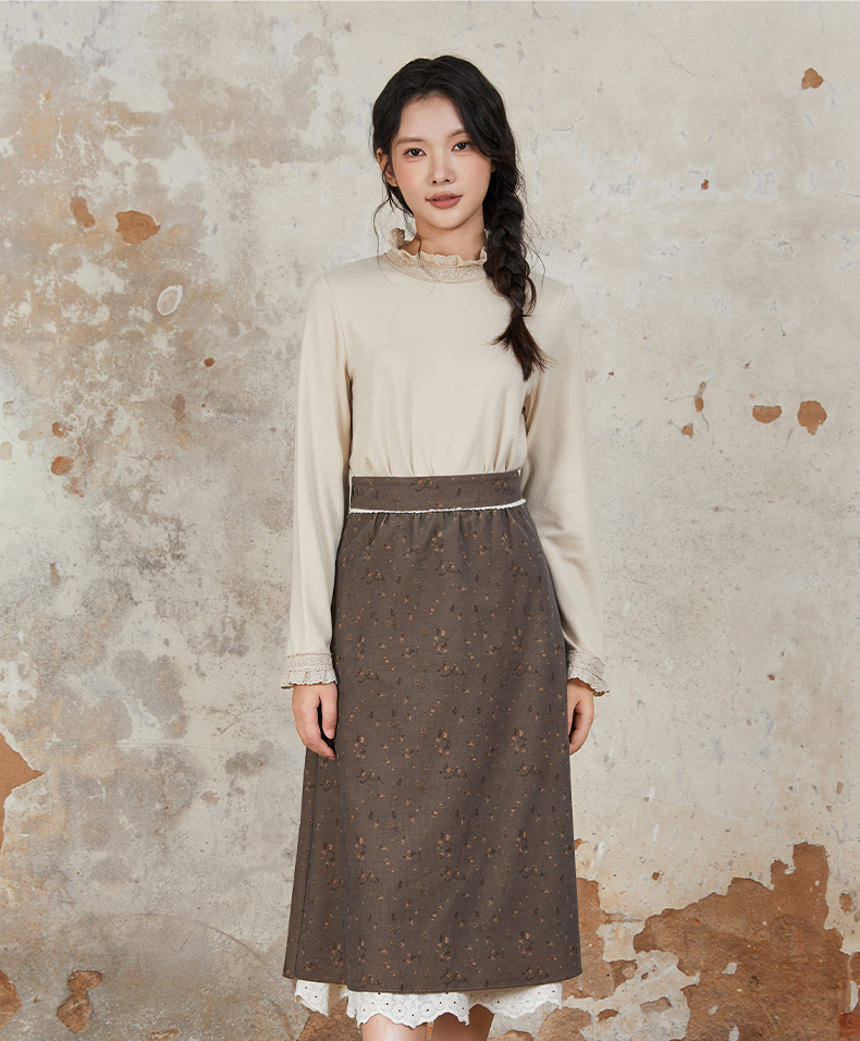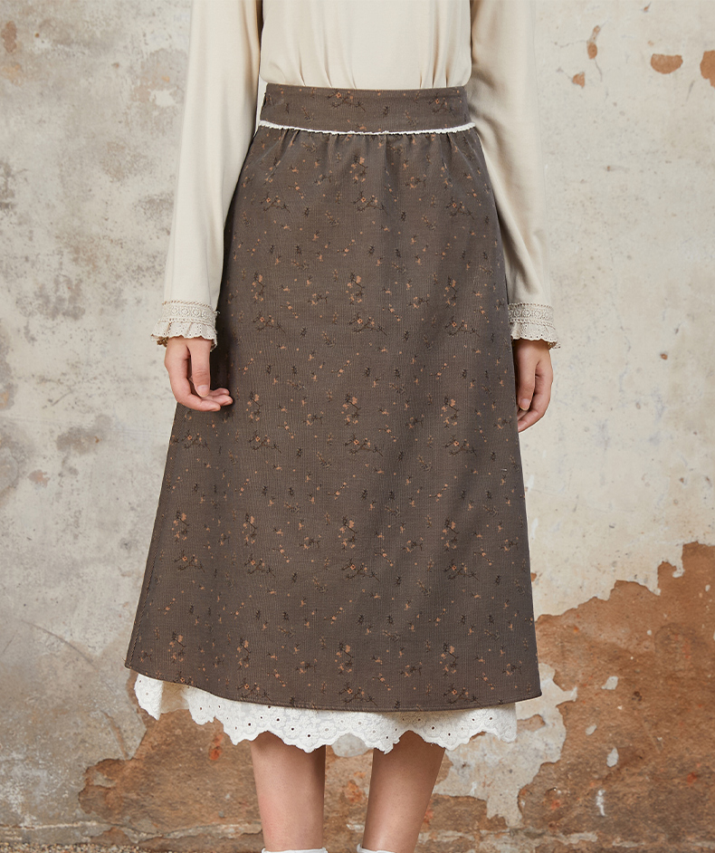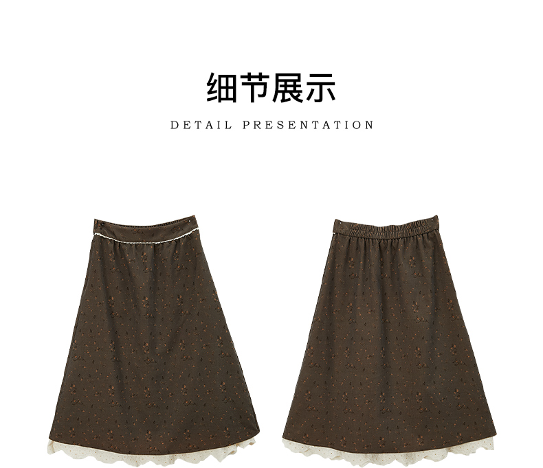 Famecoco范可儿半身裙纯棉碎花设计感裙摆花边拼接裙摆FAB6HA024