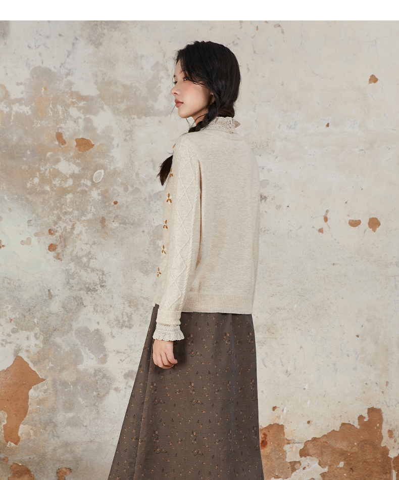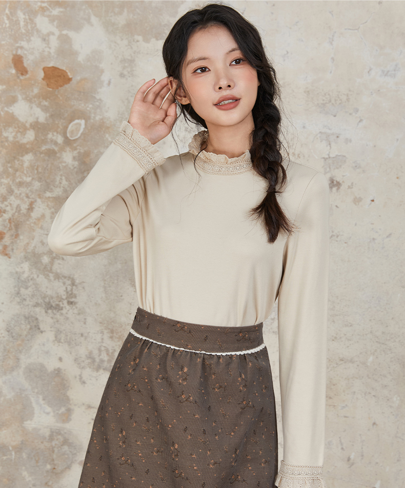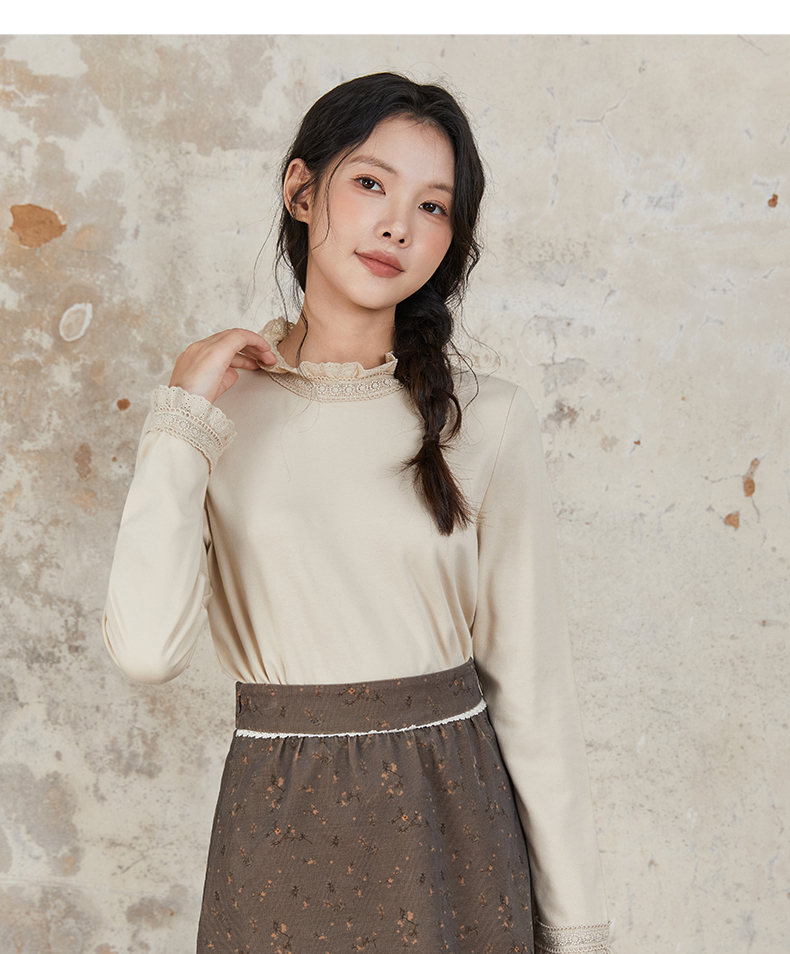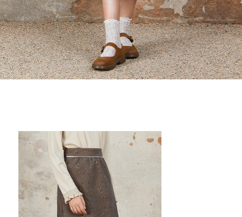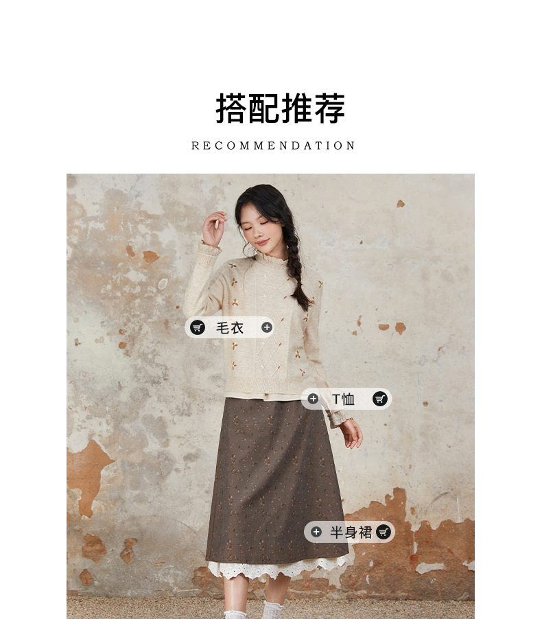 Famecoco范可儿半身裙纯棉碎花设计感裙摆花边拼接裙摆FAB6HA024